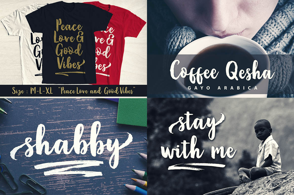 Hi world!!…Thanks for checking out the Angelow brush font! It’s simple and easy to create awesome lettering, just type your words and then you will immediately see the great results. Hand-painted with distinctive rough brush strokes, Angelow is bound to make a big impact on logos, apparel, quotes, product packaging & more. It comes with upper and lowercase characters, can be used for various purposes. such as headings, logos, wedding invitation, t-shirt, letterhead, signage, label, news, posters, badges etc.