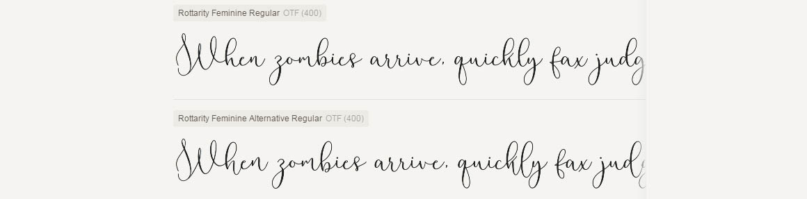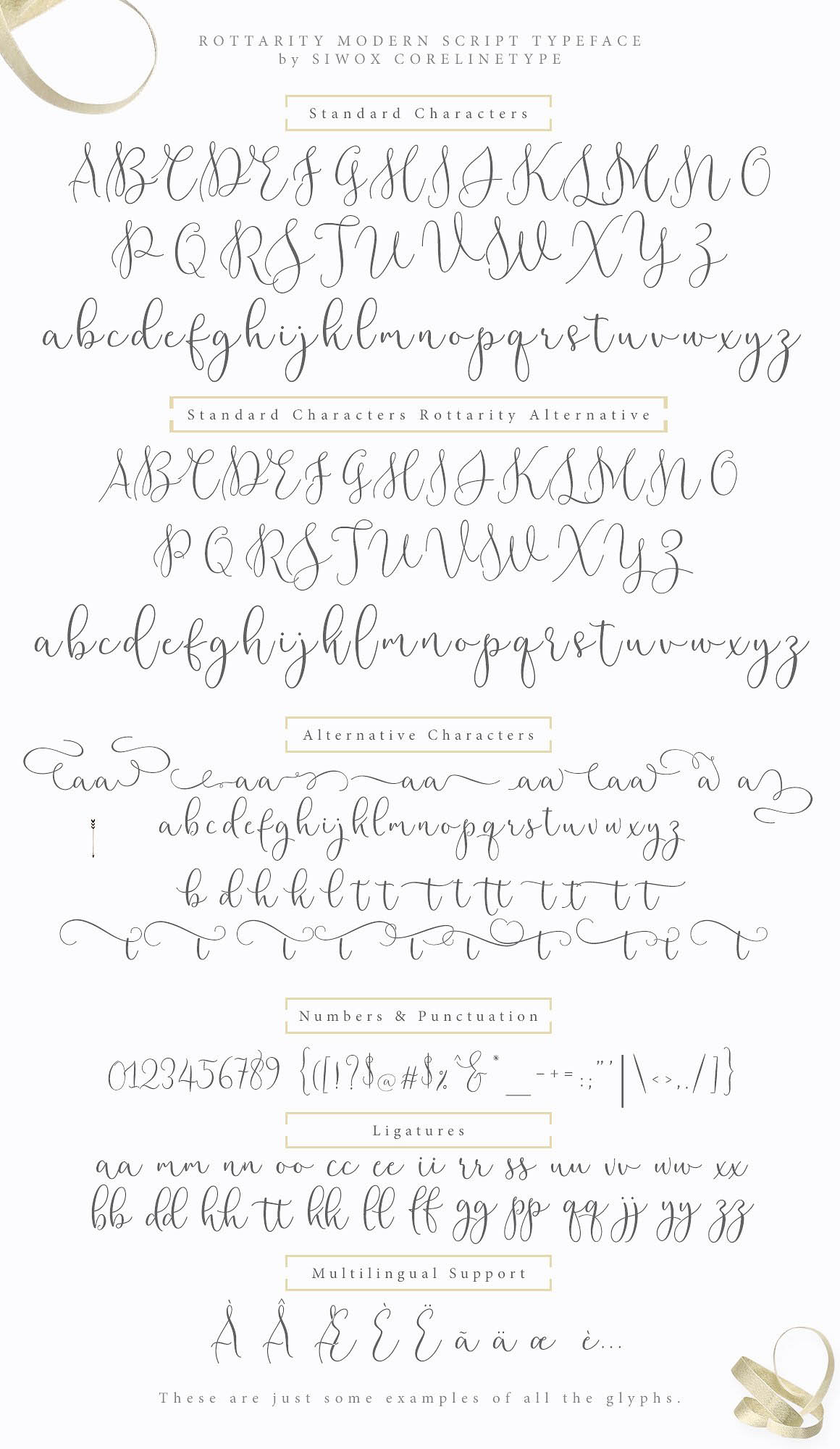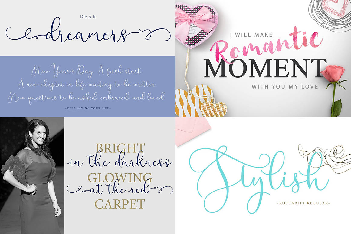 Rottarity Feminine, connecting script, designed to convey elegance and style. It is slender, feminine and friendly, let alone sexy. Rottarity Feminine will work perfectly for fashion, e-commerce brands, trend blogs, or any business that wants to appear classy and chic. The font is ideal for high-end logotypes and magazine headlines, but let’s not forget greeting cards, invitations, posters, ads and the various web usages. When it comes to the glyph set, well, Rottarity Feminine has quite a lot of that (639+ glyphs) – think multiple languages, swashes and stylistic alternates to unleash your creativity. For all pragmatists out there, there is also a basic version of the font with an extended latin glyph set (no swashes, contextual alternates or stylistic sets).