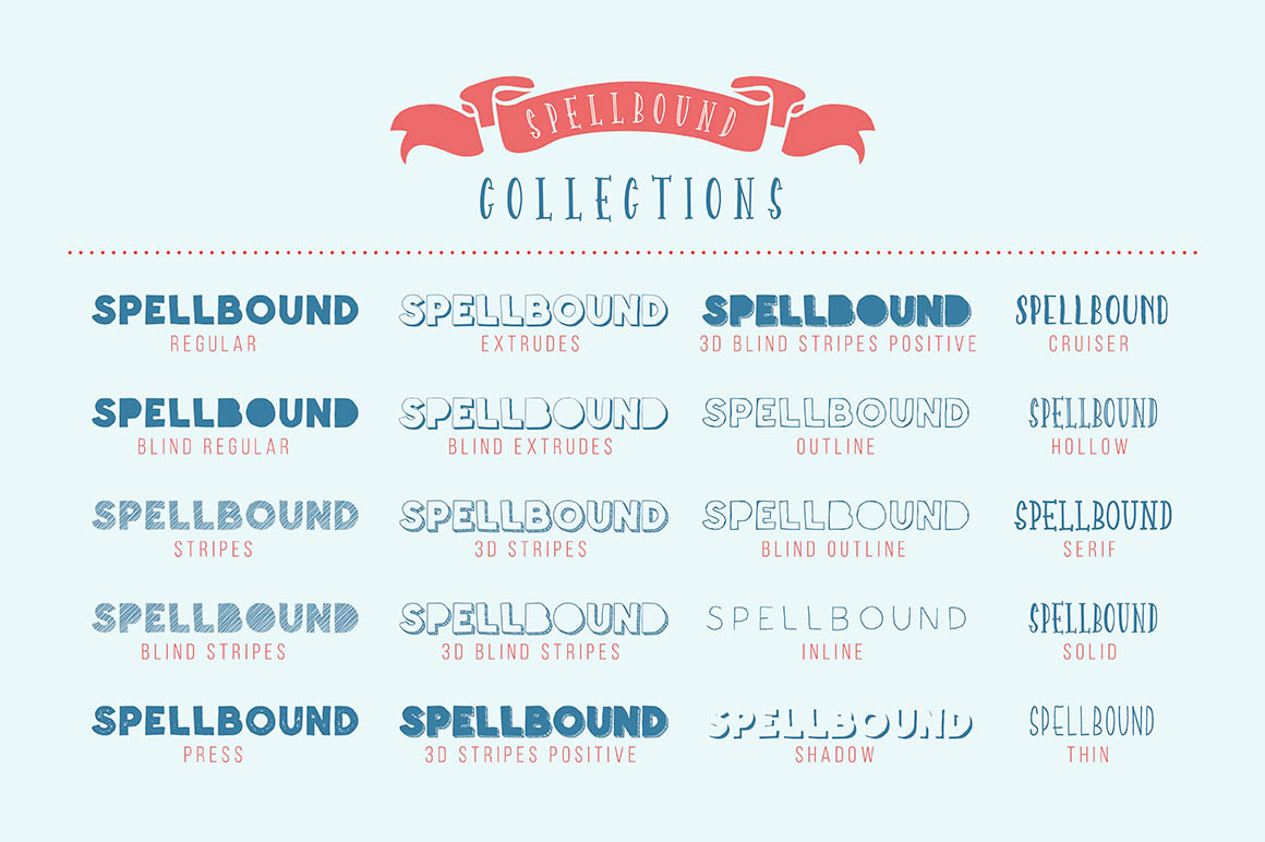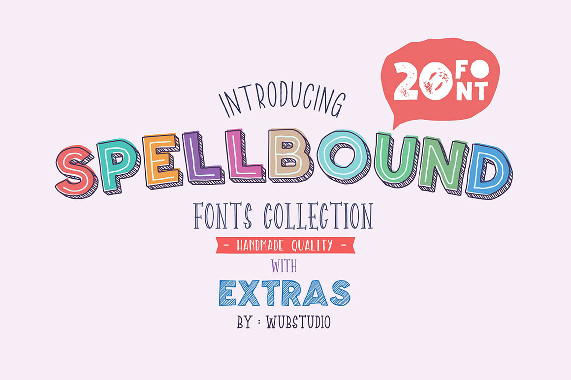 Spellbound is a font family that consists of 15 fonts layered, and five other font. You can freely select the layer that you like to suit your needs. If you want to make a themed design children, Spellbound is the solution.