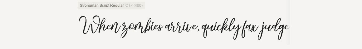 Strongman Script is a lovely calligraphic manuscript modern, I hope you are interested in this font, dynamic and pretty with swashes. Can be used for many purposes. such as title, signature, logo, wedding invitations, letterhead, signage, labels, newsletters, posters, badges, etc. Strongman Script features Open type, including the initial and terminal letters, ligatures and International support for most Western languages included.