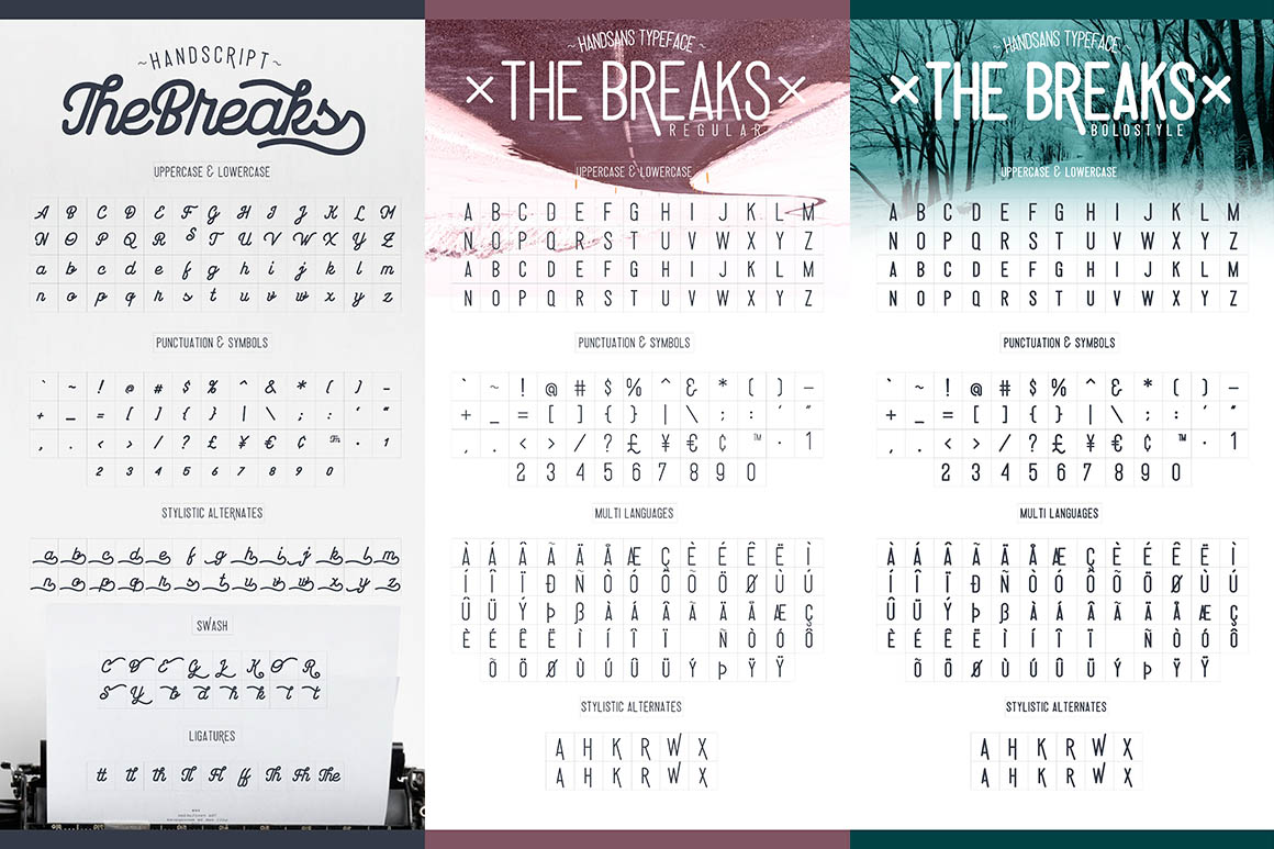 The Breaks (smooth version) is a typeface that is very simple. Can be used for part of your design themed vintage, retro, and more. This typeface is suitable for those who love the world of custom culture, motorcycle, skateboard, bike and vintage goods.