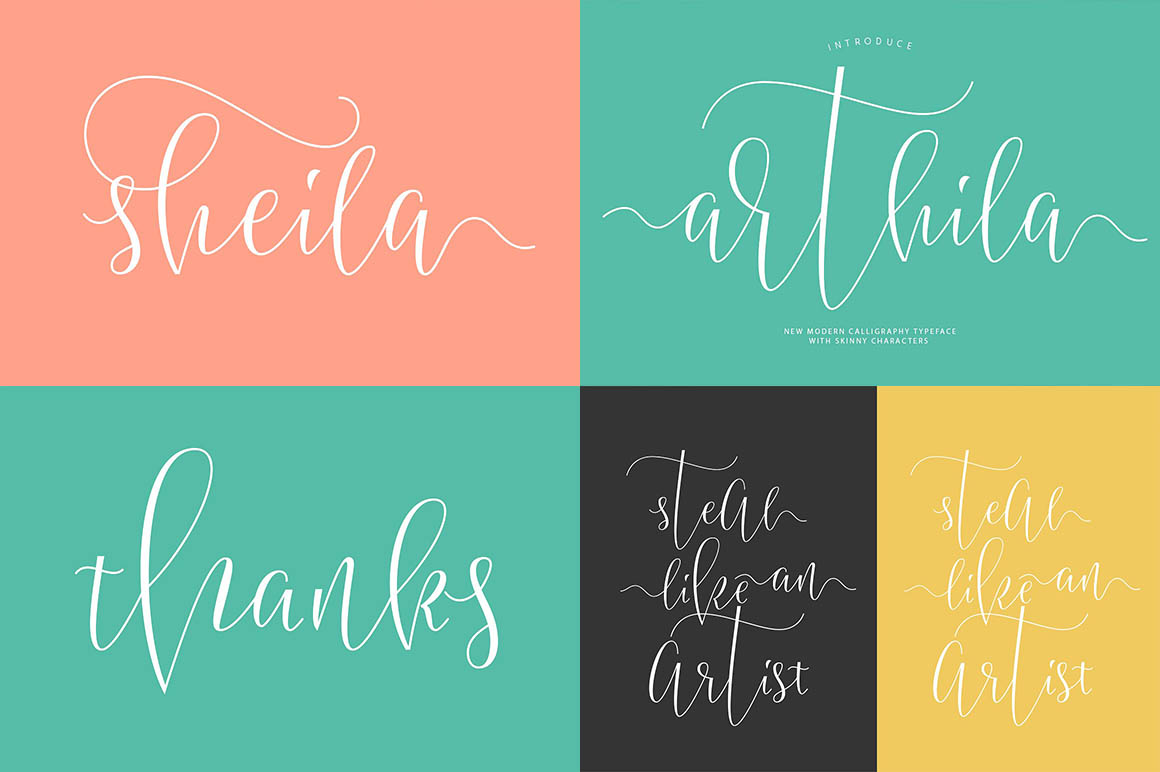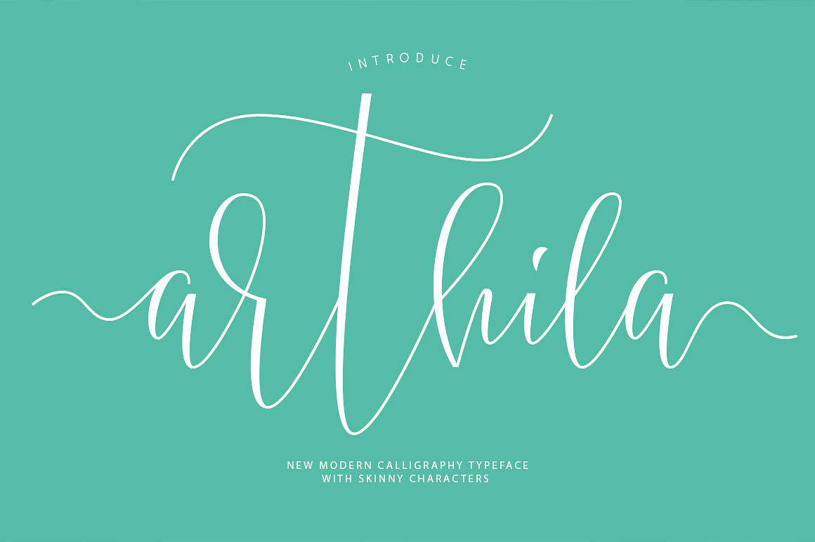 Arthila is a new script typeface for typography, lettering, logotype and more, +500 clean glyph have been added with Opentype Features included and harmony dancing baseline it’s make perfect to create Elegant Design, Modern, Cute and more.