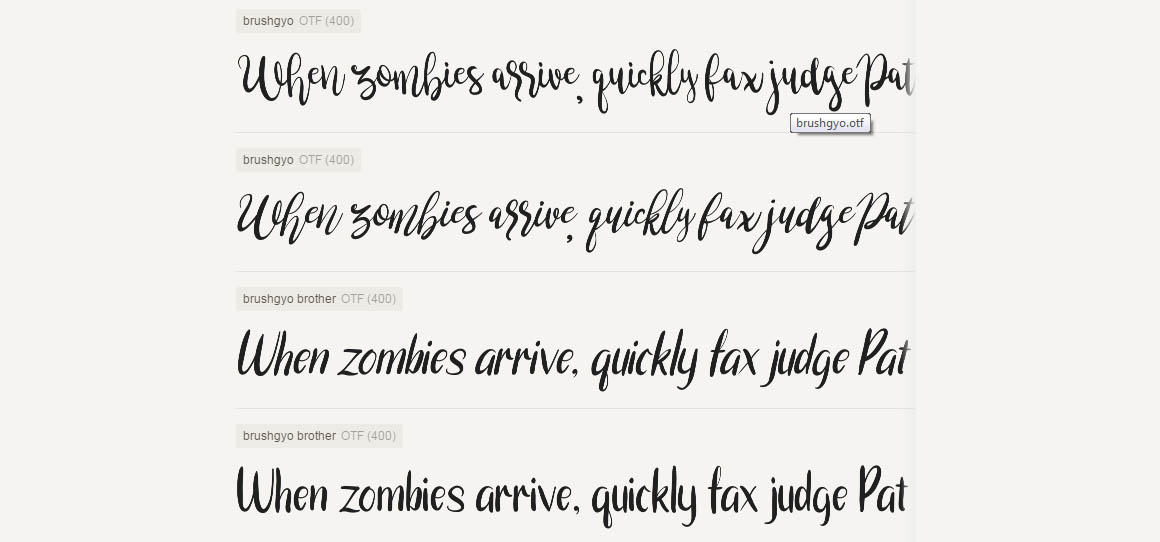 introducing brushgyo duo brother typeface. yeah… duo brothers because they are both very suitable if combined for your designs. For brushgyo regular it’s embrace modern script and brushgyo brother can be said to belong to handwriting sans serif. brushgyo duo brother perfectly suited for logotype design, lettering wedding couple name, menu foods design, t-shirts design and others. font is worthy of being one of a collection of your fontbook because to have a unique character, handwriting and modern style.