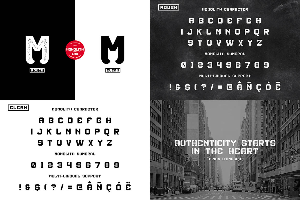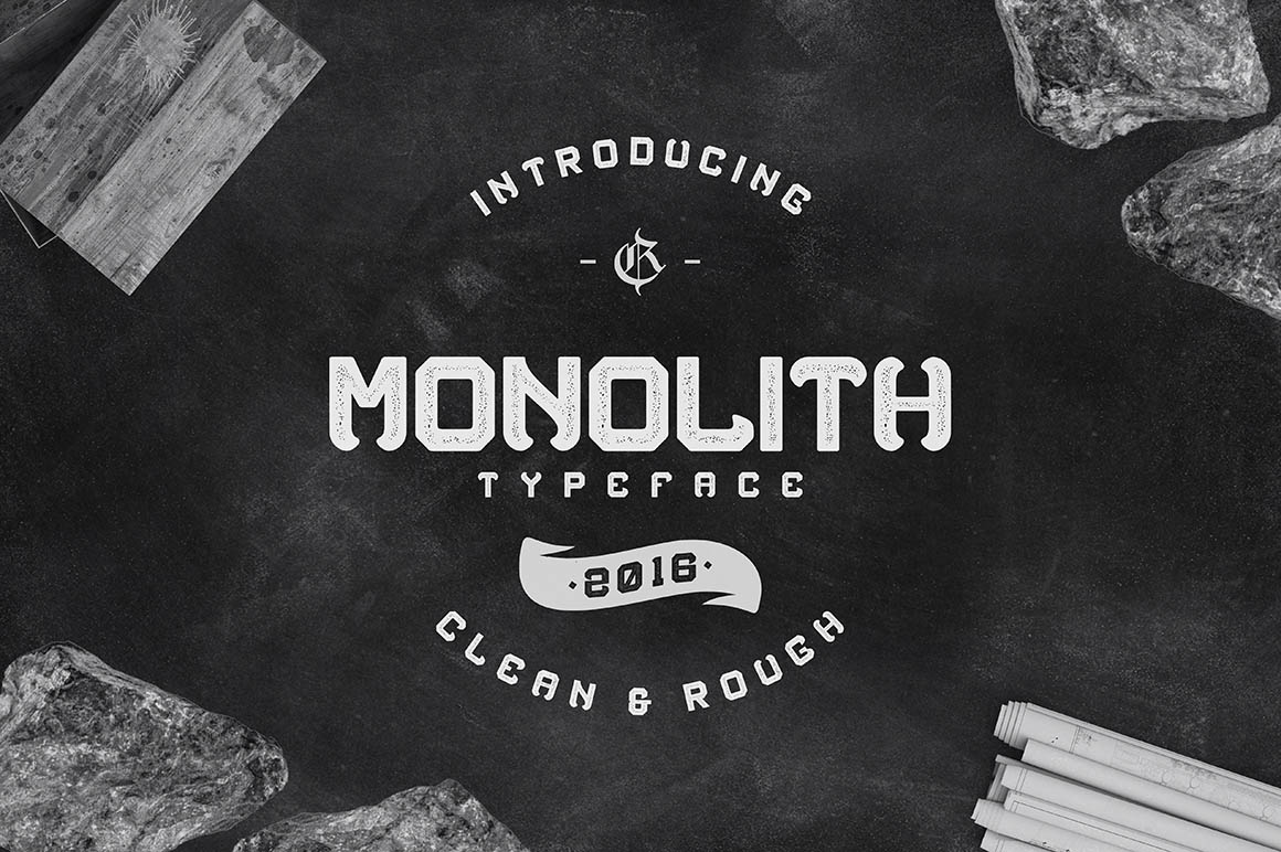 Monolith typeface is new font from RVQ type foundry,the font with simple, minimalistic, retro and vintage feel character set. Come with 2 styles, a clean and rough,The Monolith typeface includes a full set of capital and lowercase letters, as wellas multi-lingual support, currency figures, numerals,punctuation. Monolith typeface is suitable font for many creative products & designs also logo type.
