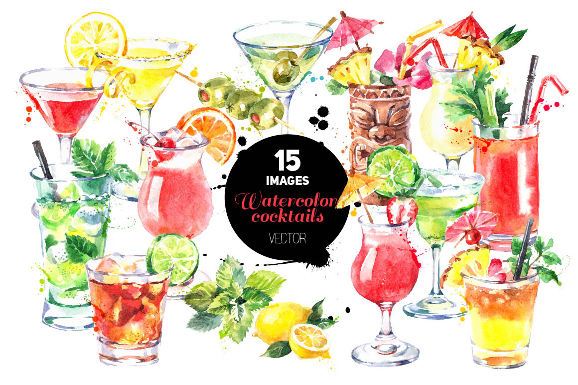 2. Cocktails Watercolor Vector Set from Elena Pimonova