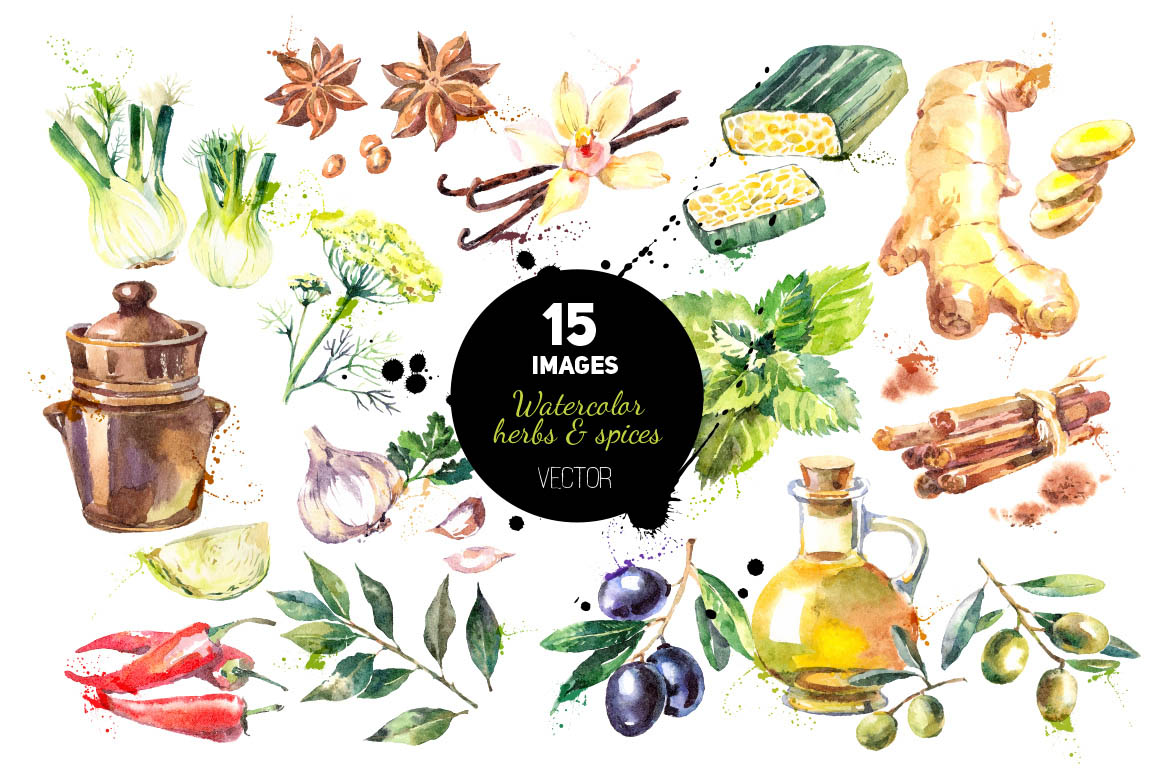 6. Watercolor Herb & Spices Vector Set from Elena Pimonova