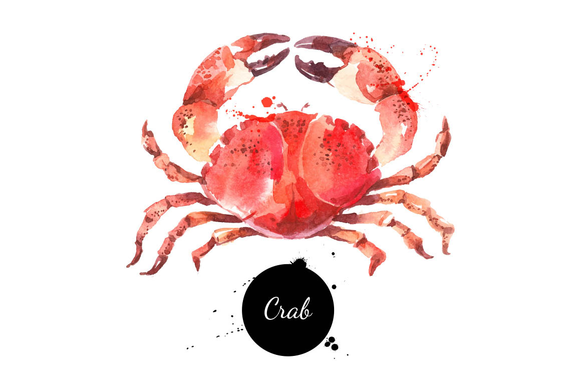 Set of 6 hand drawn watercolor seafood. Traced vector illustrations. Zip file contains editable 6 EPS vector files and 6 JPEG images.