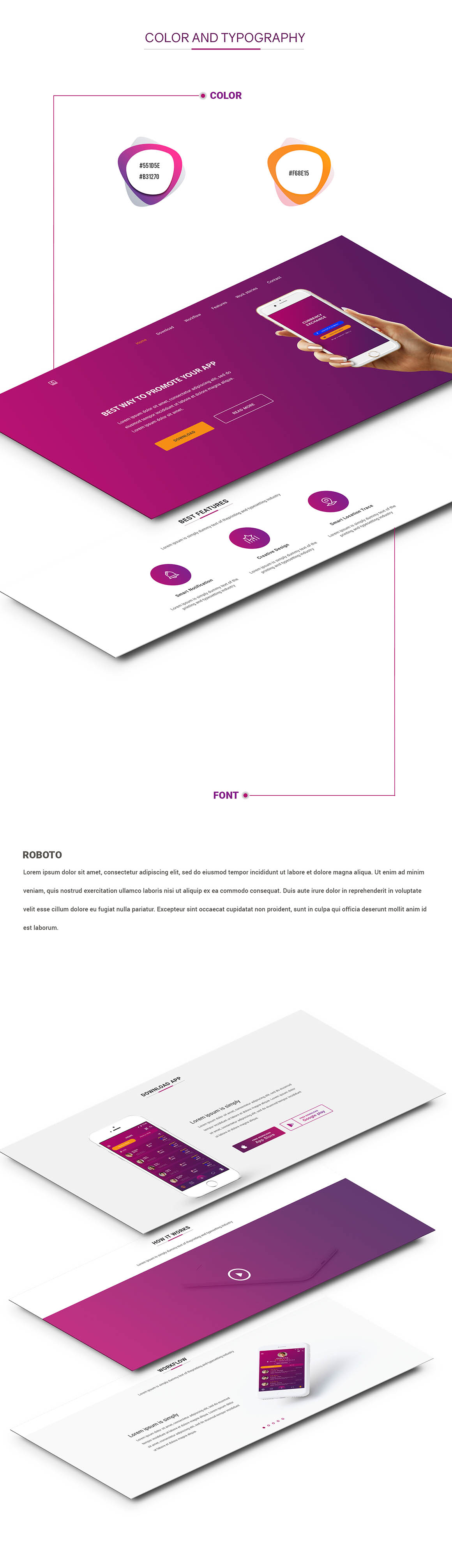 Free Adobe Photoshop landing page for your app template from Dibbendo Ghosh Pranto. Download and enjoy 😉