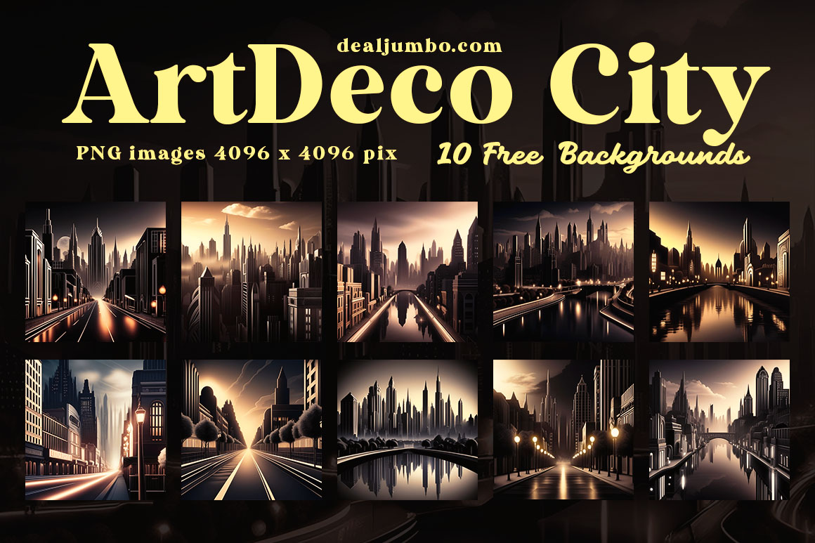 Amazing FREE graphic bundle with 10 night city backgrounds in Art Deco style in hi-res PNG image format from Deeezy. Download & enjoy đ