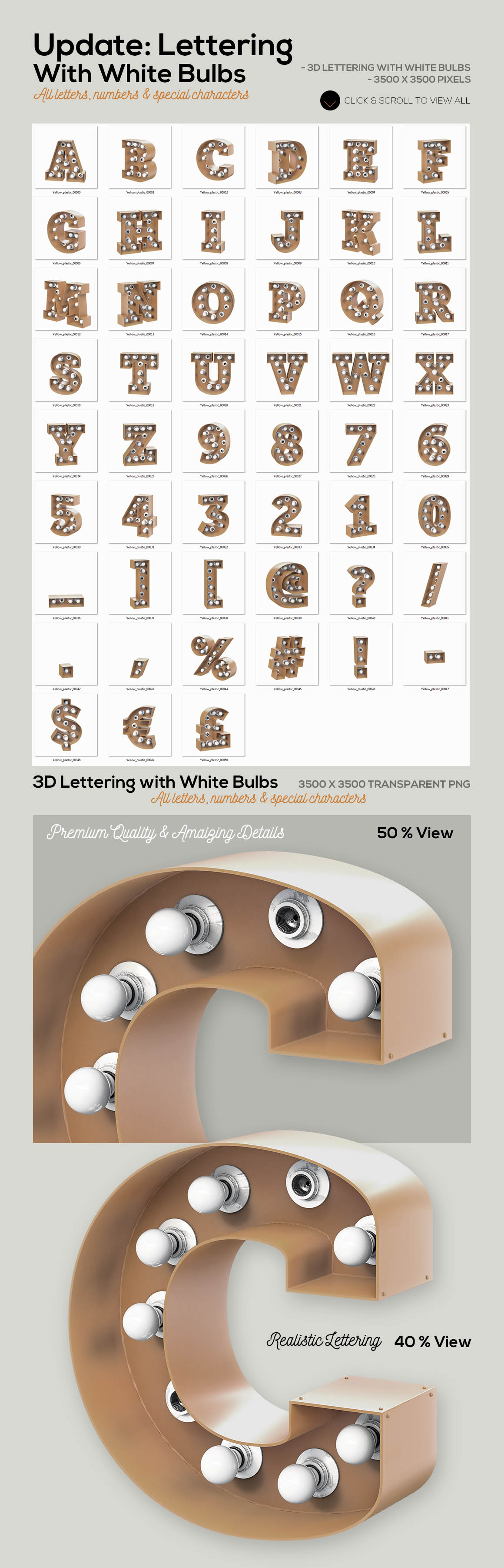 3d letterings with 3500 x 3500 pixels transparent PNG files – all letters, numbers & special characters.