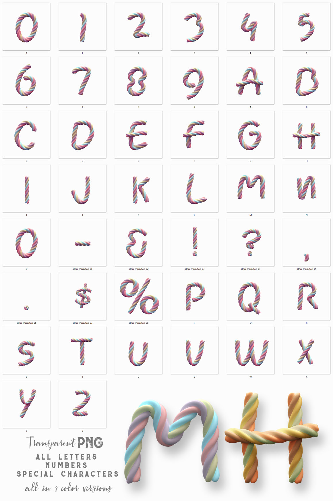 - Transparent PNG lettering (3000×3000 – but letter size is around 1500×2000)