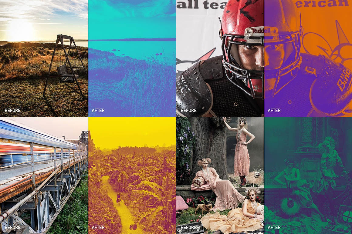 Free duotone Photoshop photo action with lot of effects from Kovalski. Download & enjoy đ