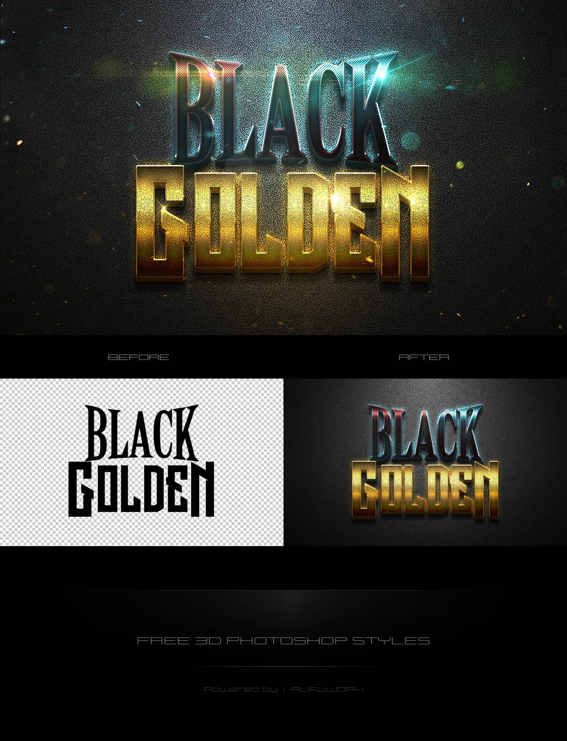 Free Photoshop text effect with black & golden style from Alifuwork. Download and enjoy 😉
