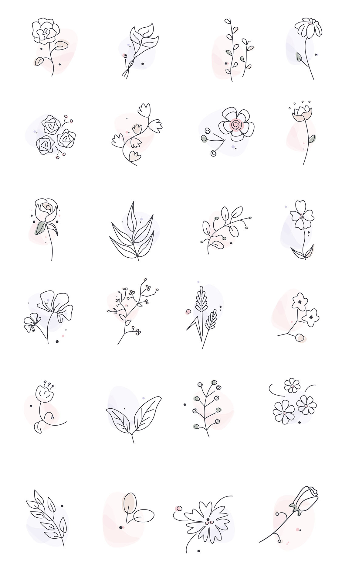 FREE simple floral linear illustrations – vector Ai, SVG & PNG image files from Nada Ishtewi. Download and enjoy đ