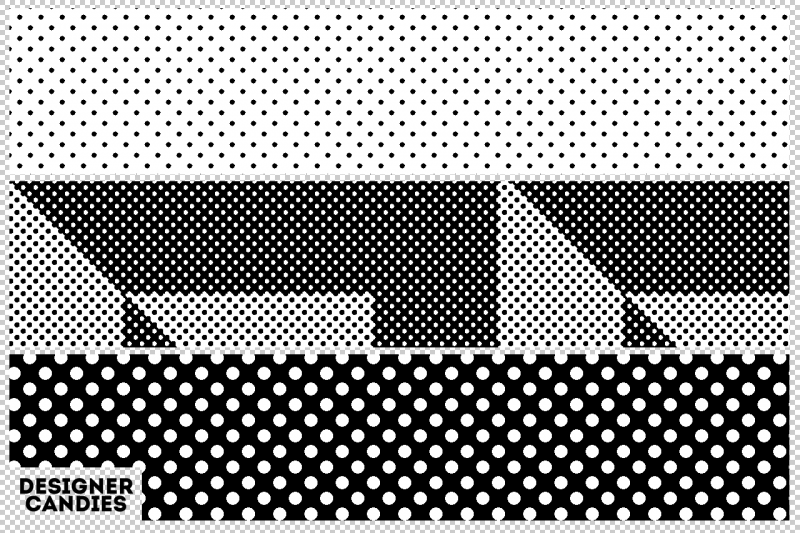 Cool halftone dotted patterns from DesignerCandies. Patterns are one of my favourite Photoshop features. Easily combine them with text, vector objects, layer styles and more to add seamless textures to your work. More amazing items from this author also here!