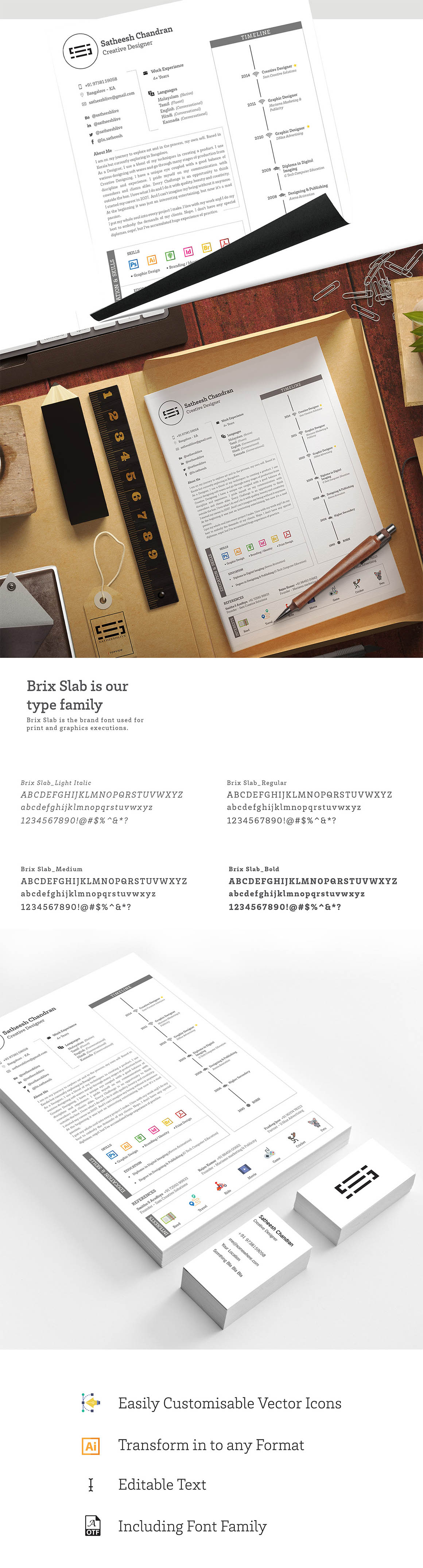 Free modern cv or resume template – in vector AI file format from Satheesh Chandran. Download & enjoy 😉