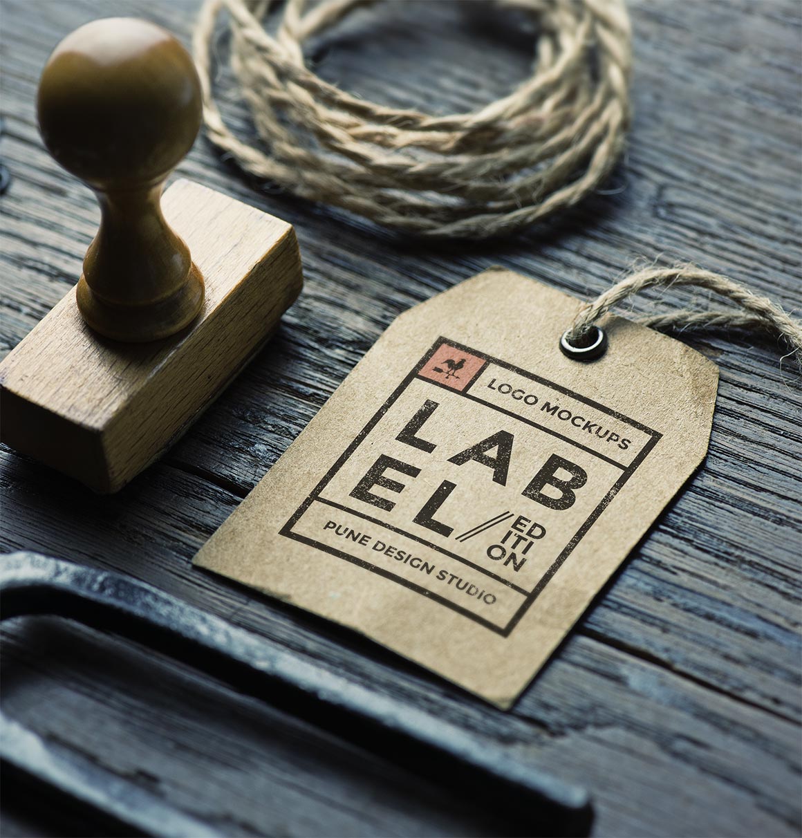 Free label presentation mock-up template for your logo or text from Pune Design.