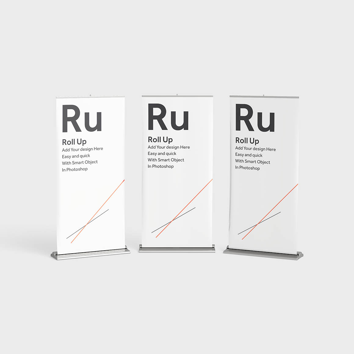 Roll up banners mock-up template in PSD format from QEAQL. Download & enjoy 😉