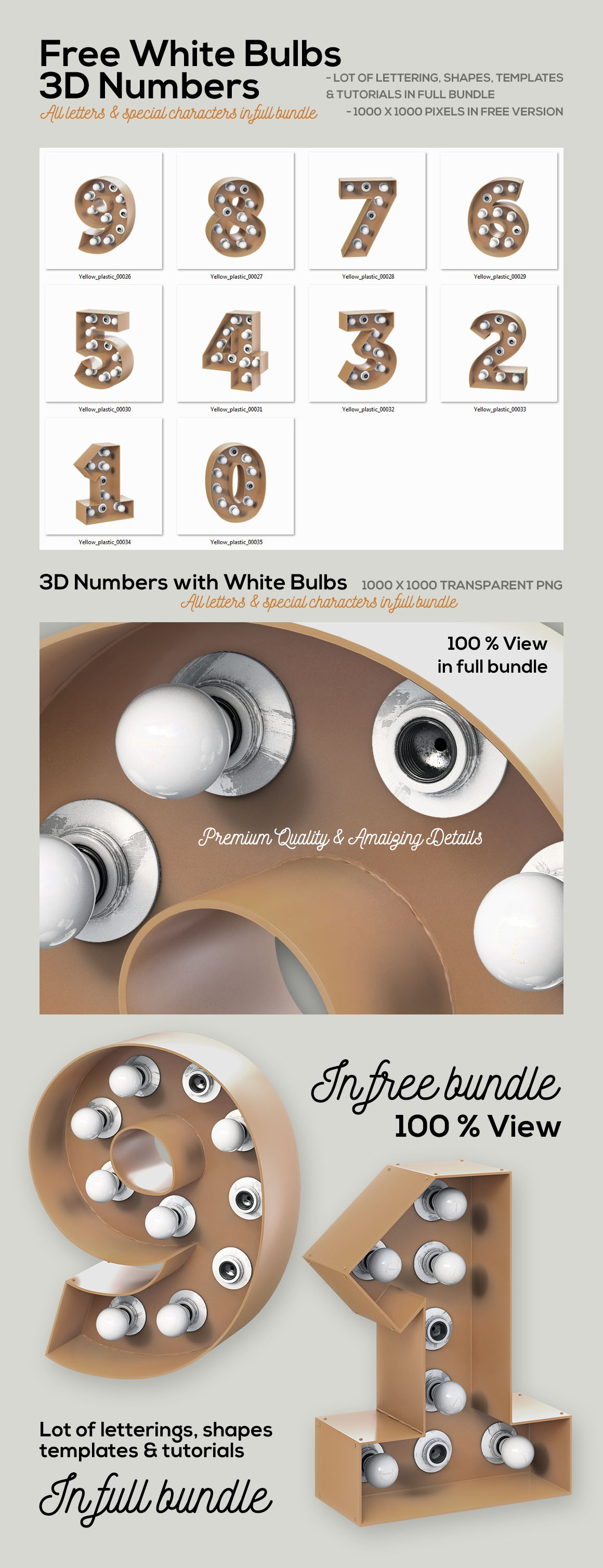 Free transparent PNG numbers with 3D marquee light bulbs style from TV Artworks. Great for your new graphic designs. Download and enjoy 😉