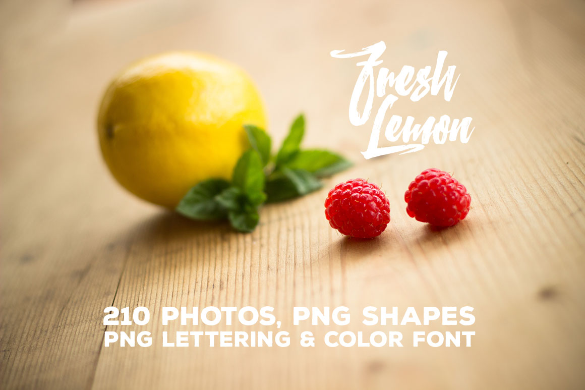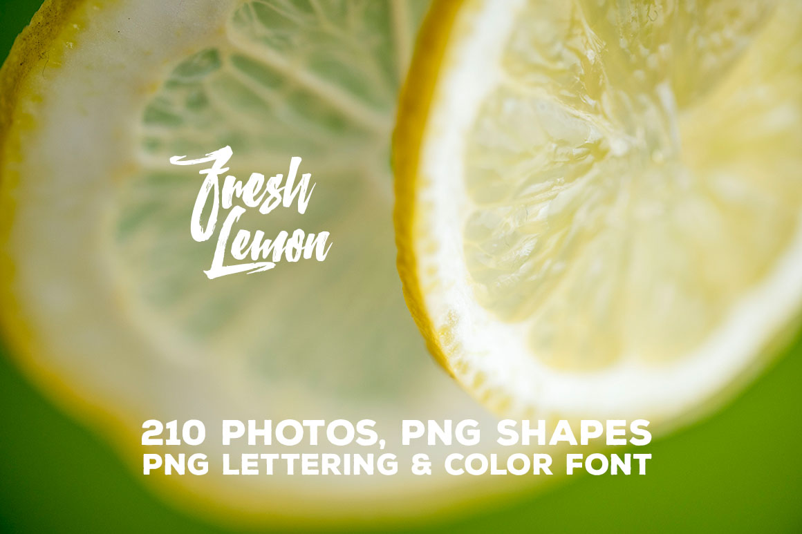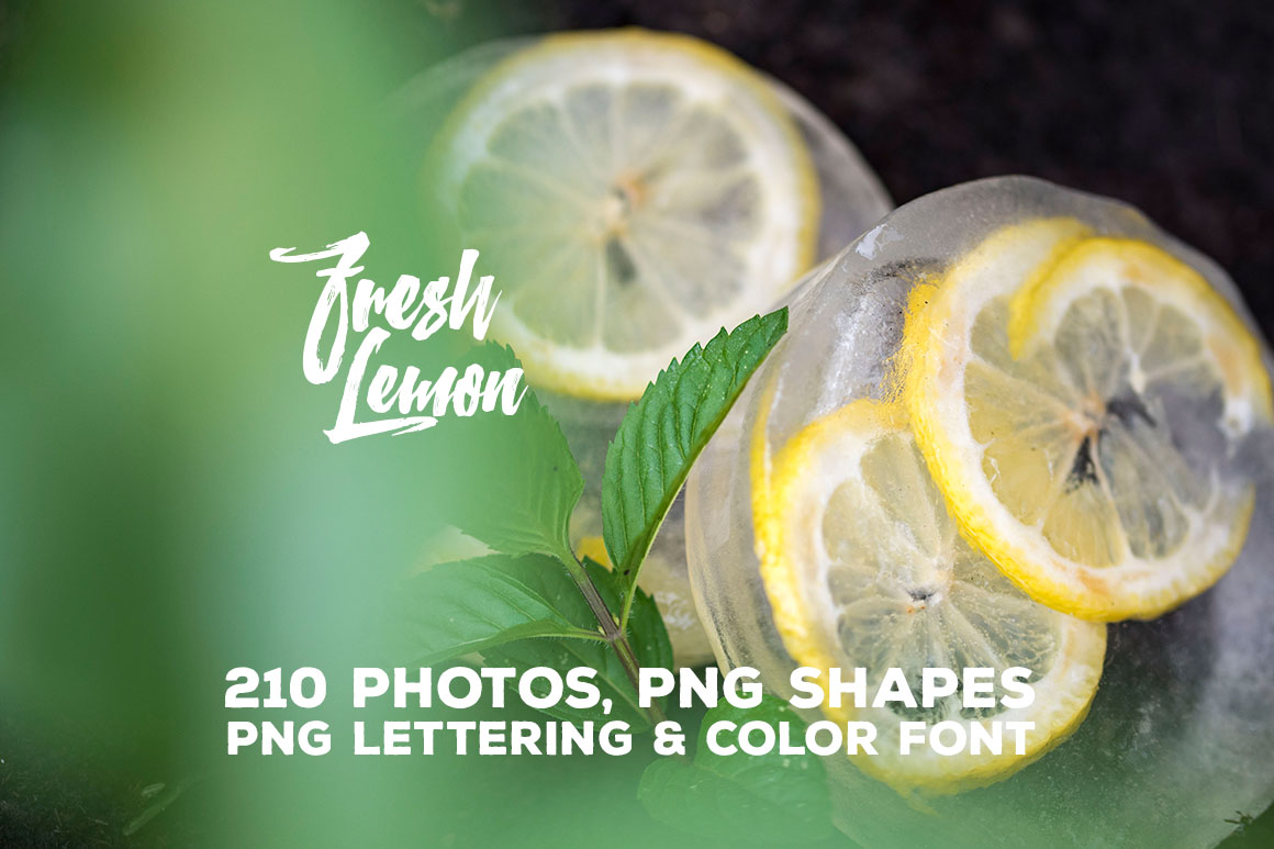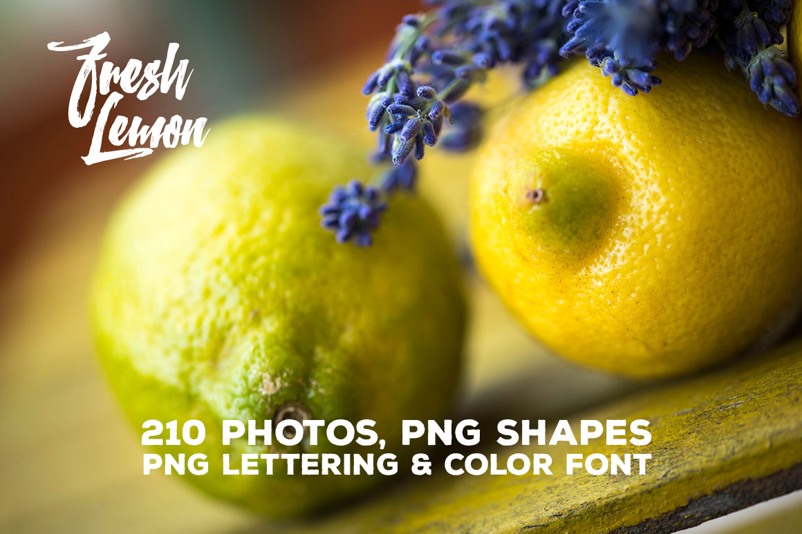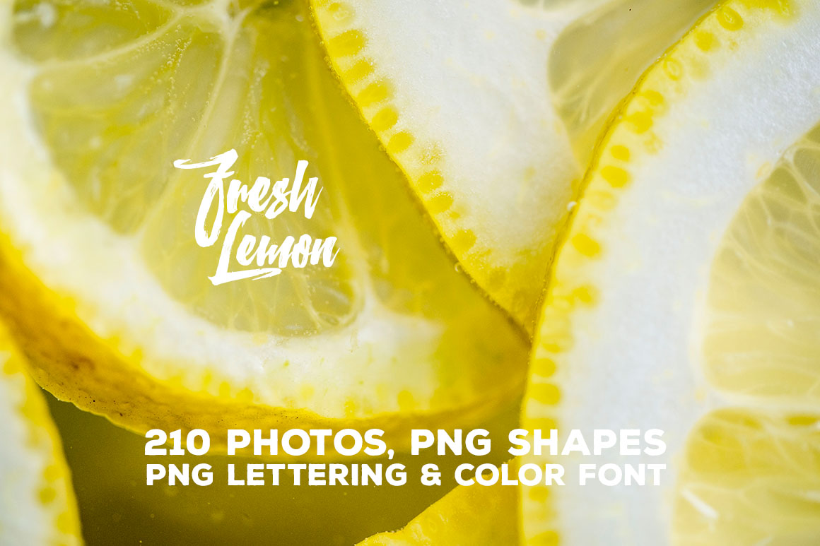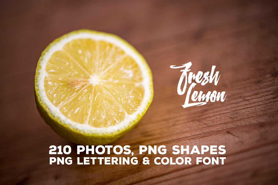 We’re trying to get the best & unique deals on the market, and this is one of them for sure. Fresh Lemon – Photos & Graphics by Cruzine Design contains 210 hi-res stock photos, 29 transparent PNG lemon print shapes & creative lemon style PNG lettering & color font!