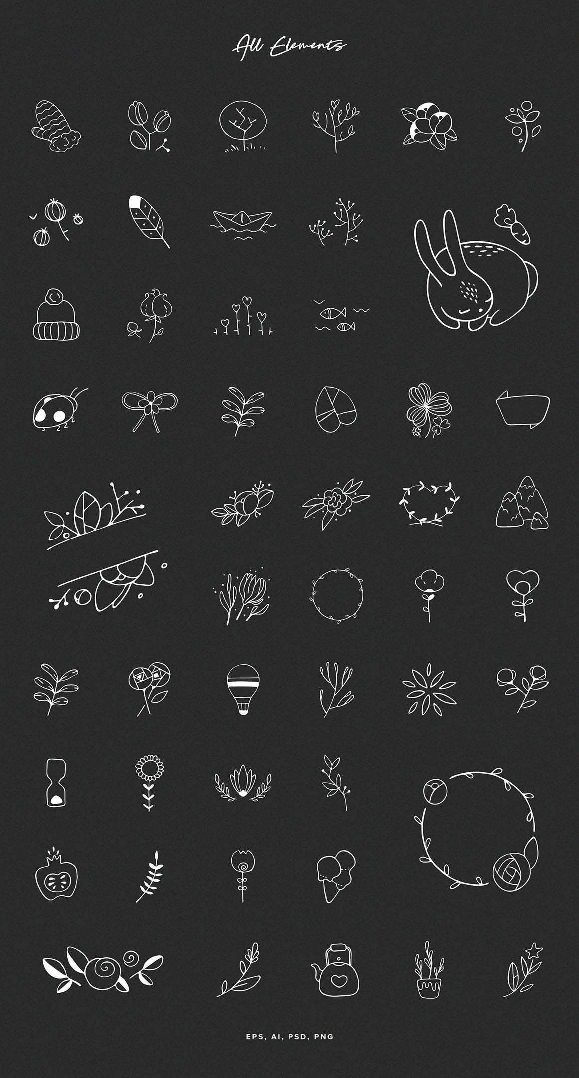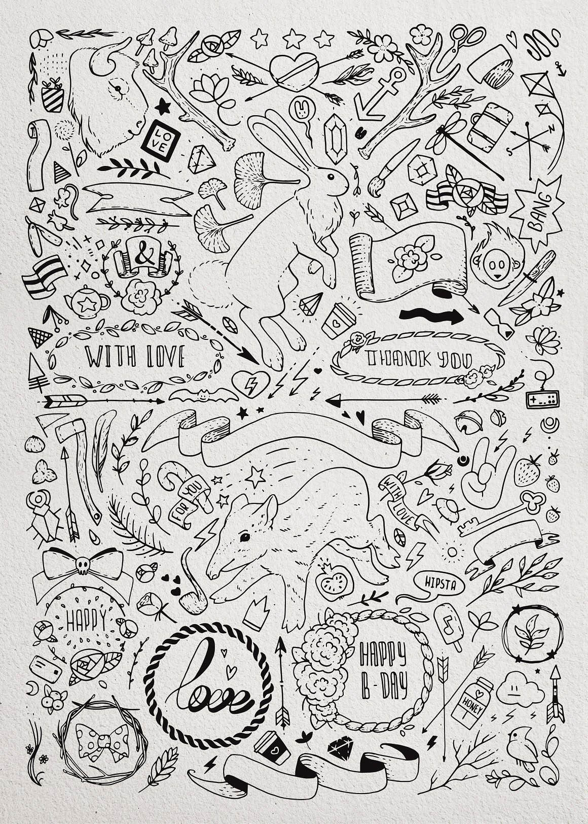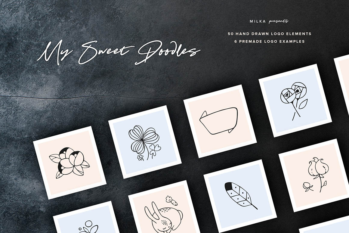 Not so long ago I was doodling in a cafe, putting on the pages some lovely creatures and images from my mind. And I loved them so much that couldn’t help sharing them with you in My Sweet Doodles collection. The collection includes 50 adorable vectors and 6 premade logos, and hope you will be excited like me!