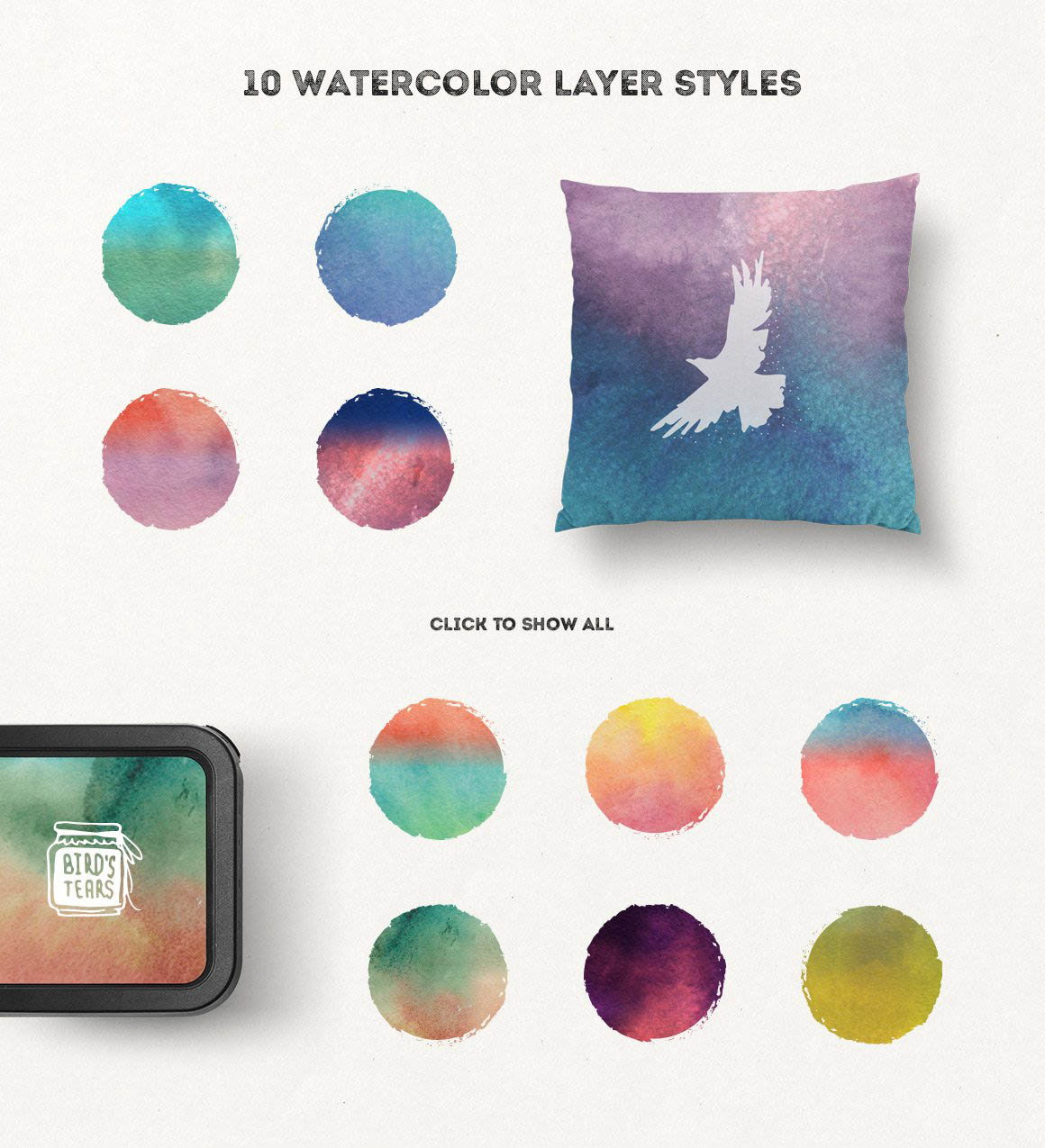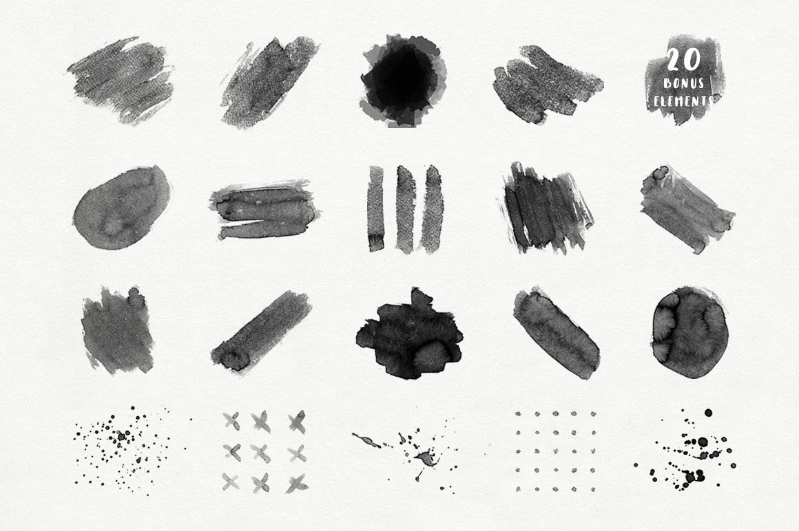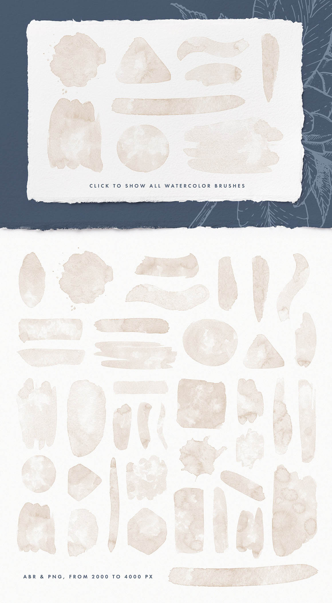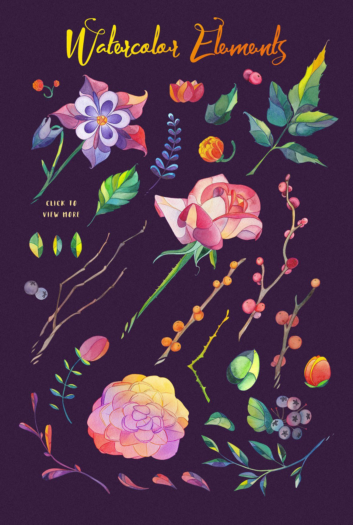 • 30 hi-res isolated watercolor elements (PNG, EPS)