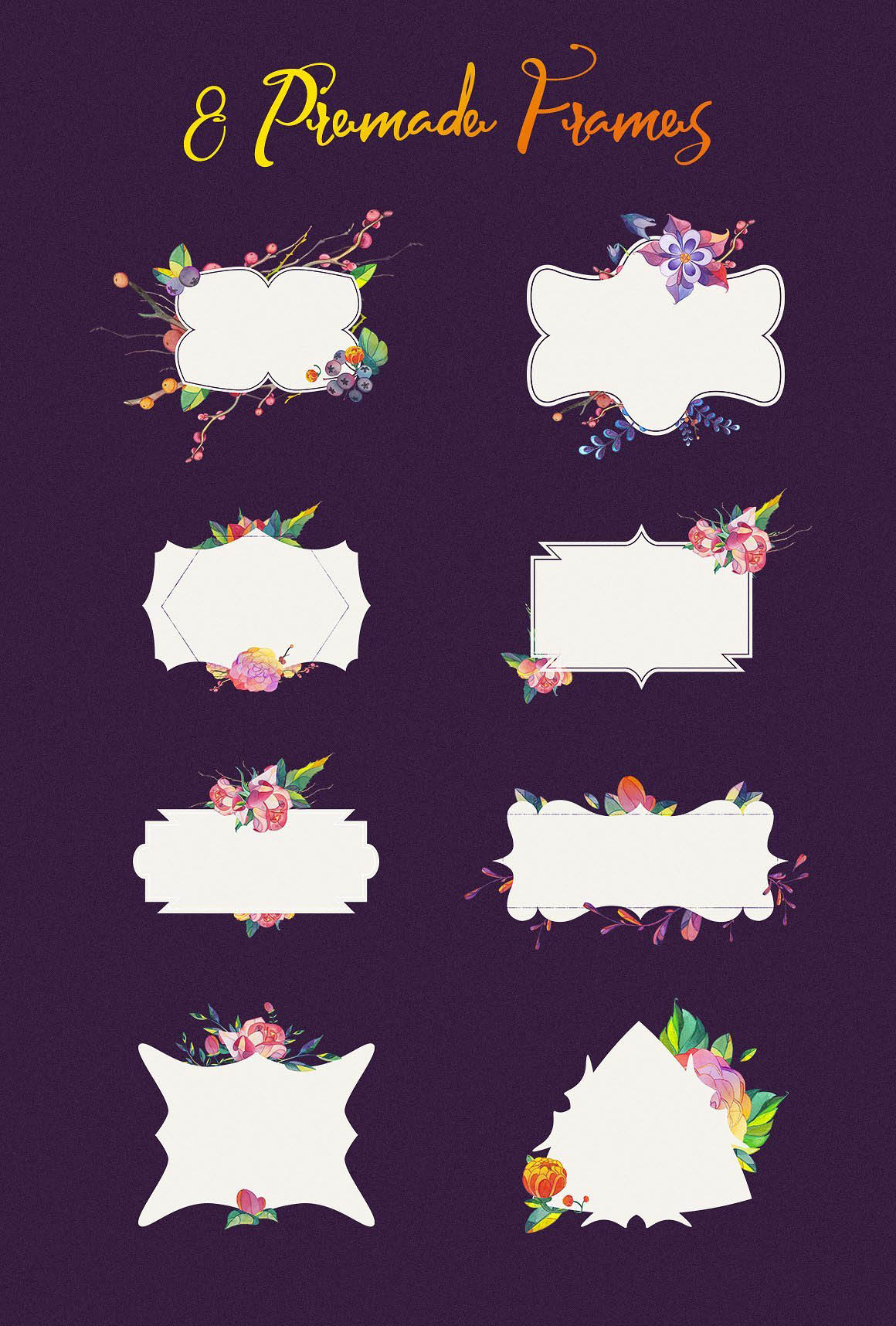 • 8 pre-made frames, just to warm up your creativity (PNG)
