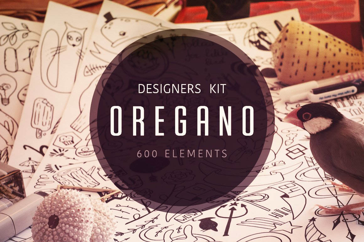 I’m happy to give you the Oregano, a huge pack of vector elements which contains all what you need for creating sweet designs for different needs: logos, labels, prints, patterns, greeting cards and many other. I’ve tried to put all my soul in each element from this kit (fair for both cute animals and demonic creatures) and I really hope you will like it.