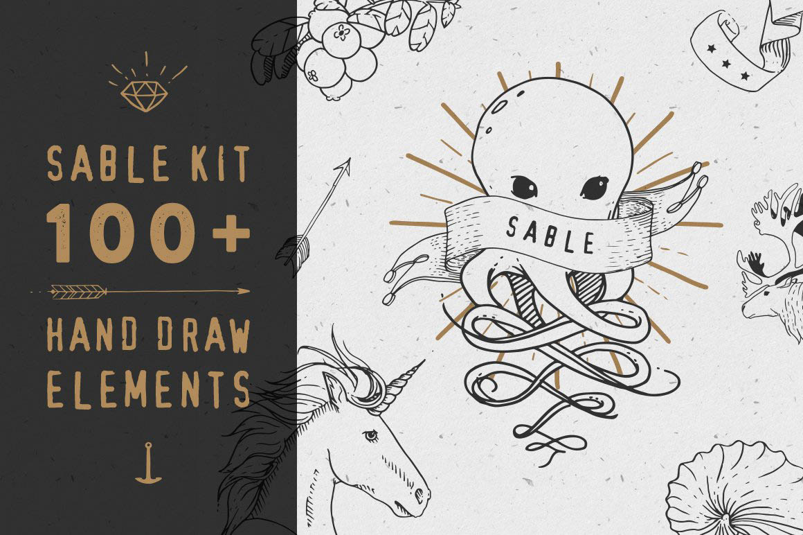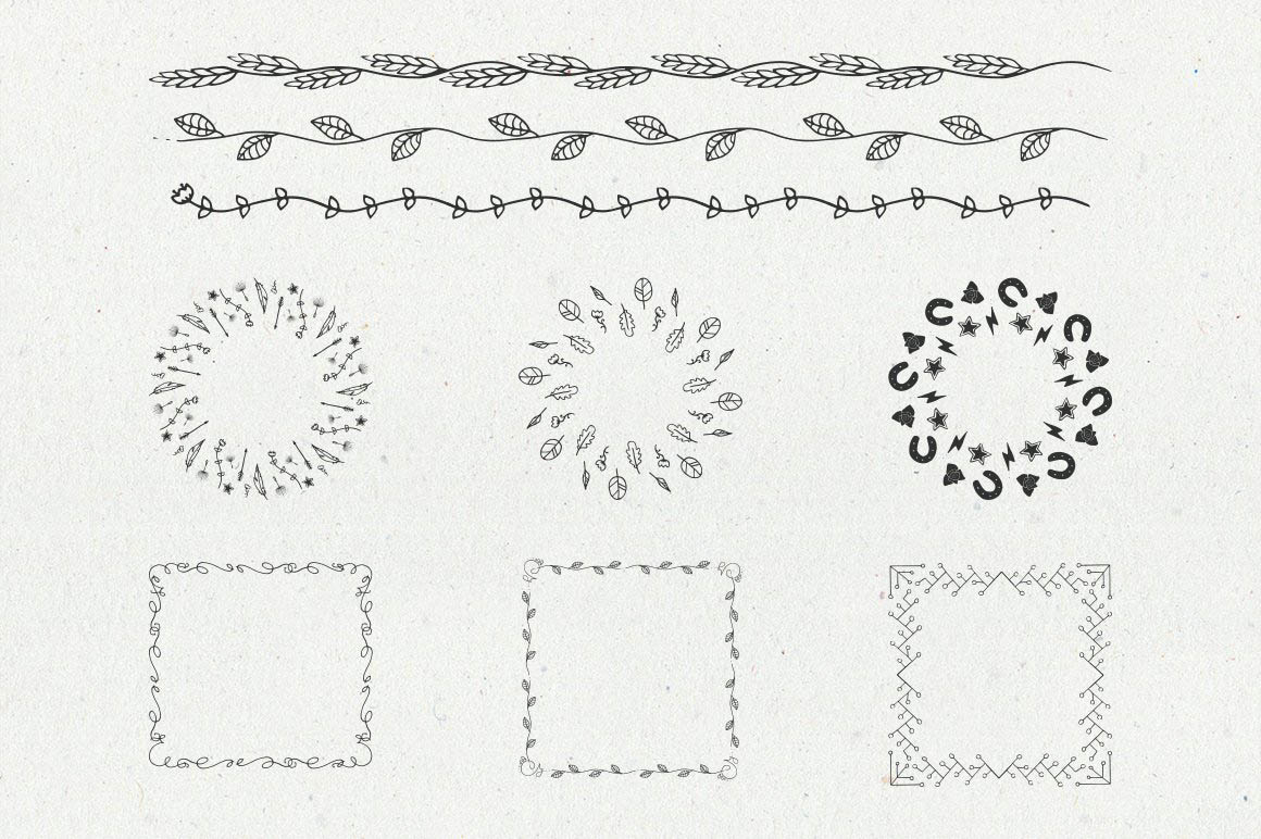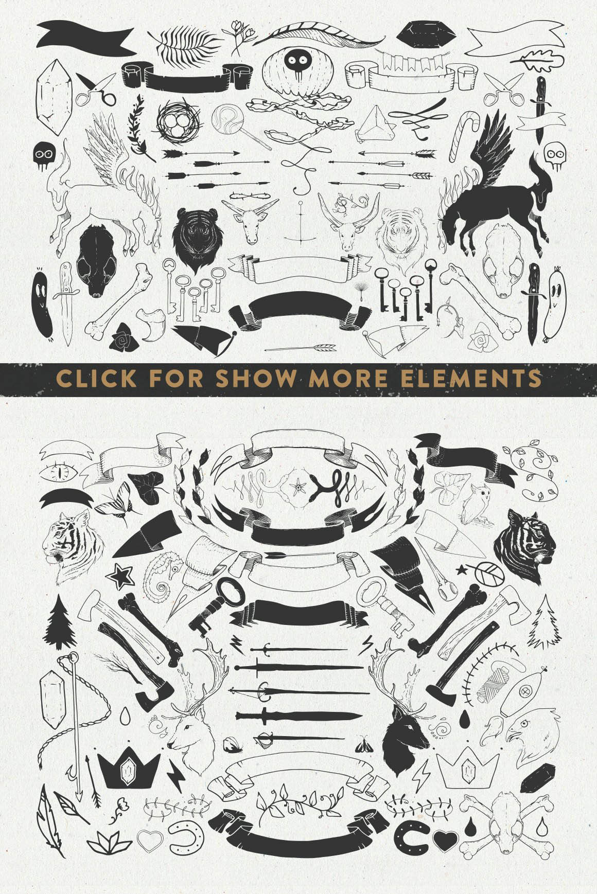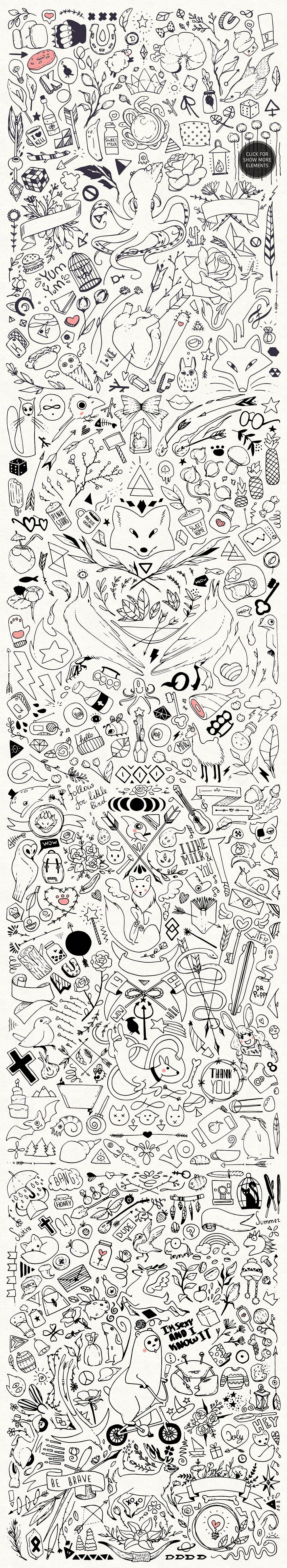 What you see here is a new vector hand-sketched kit, that includes more than 100 unique shapes like arrows, ribbons, beams, decoration elements and even some magic creatures! Wide range of use can make it an irreplaceable part of your toolbox. In the package you will find elements for creating logos, labels, prints, patterns, greeting cards and many other.