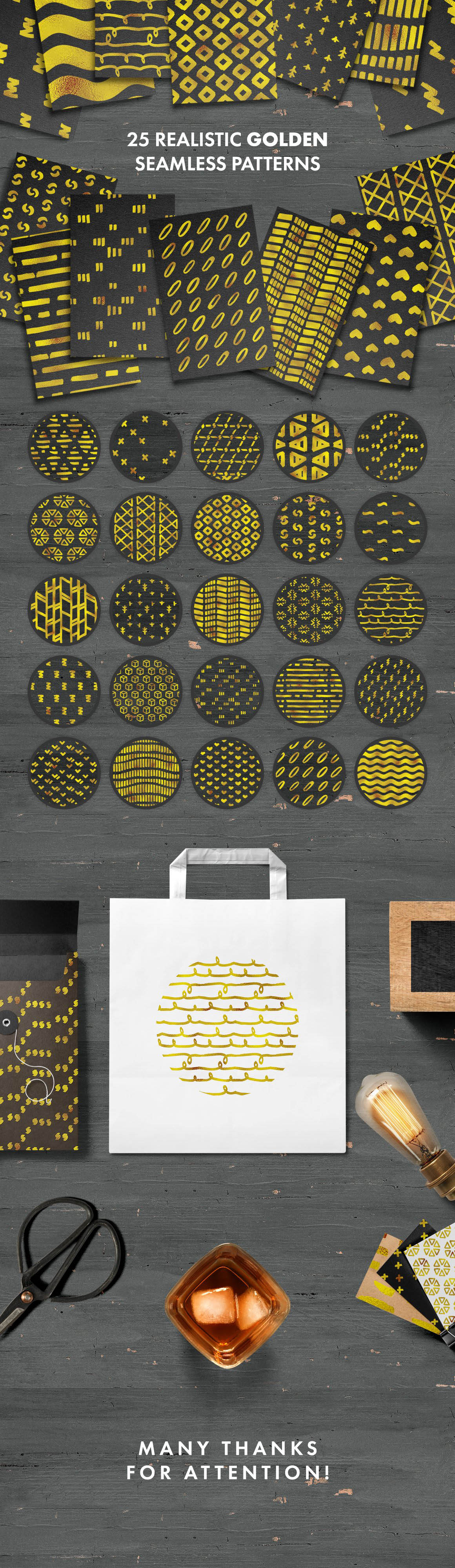 • 25 Gold Seamless Patterns in JPG Format (4000×4000);
