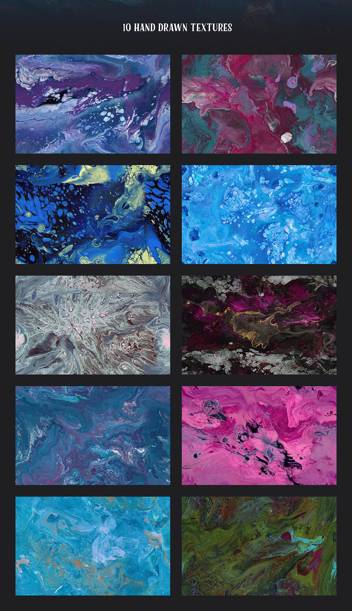 I’ve mixed all of written above and added some acryl paints to turn it perceptible (oh, what a mess it was to paint them with a cat along!), so meet Seamless Acrylic Abstract Textures at last! I’ve done my best to pick the best color solution for every texture, so now you can enjoy 10 fabulous, cosmic, charming items — and, as I believe, each of them may perfectly fit your mood and your idea, just feel their energy and magnetism!