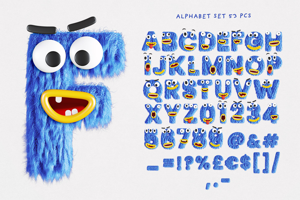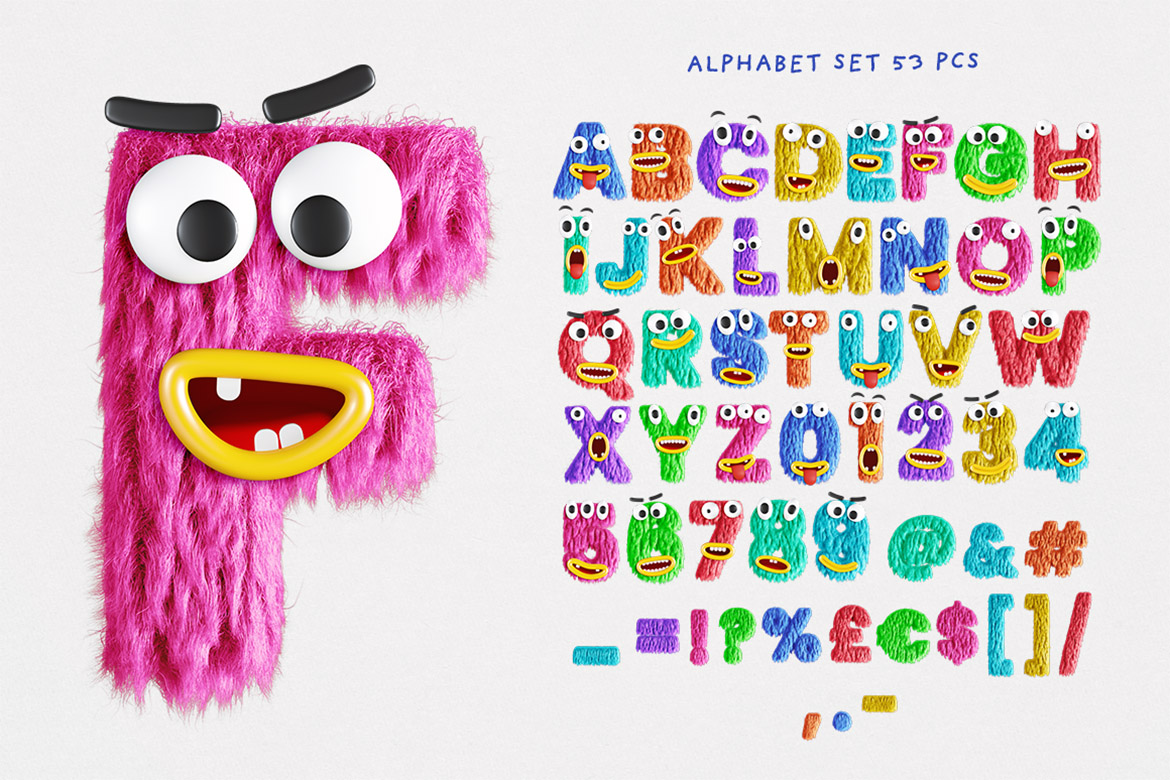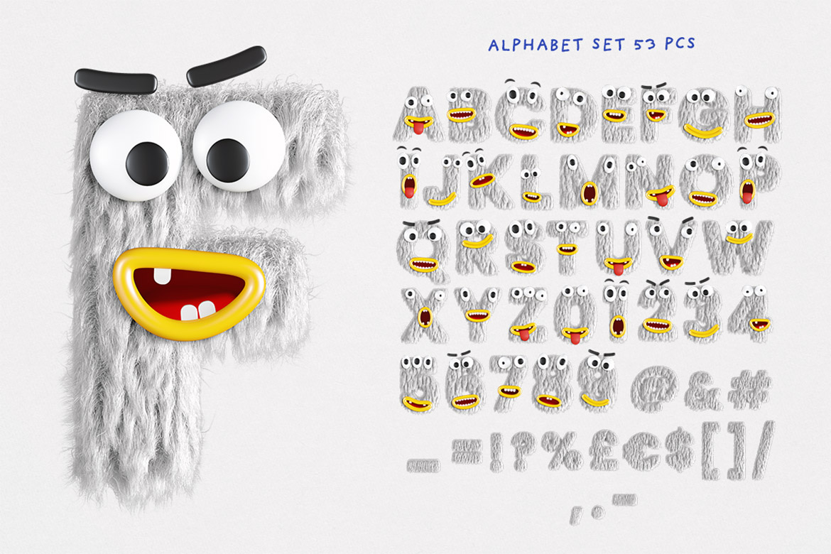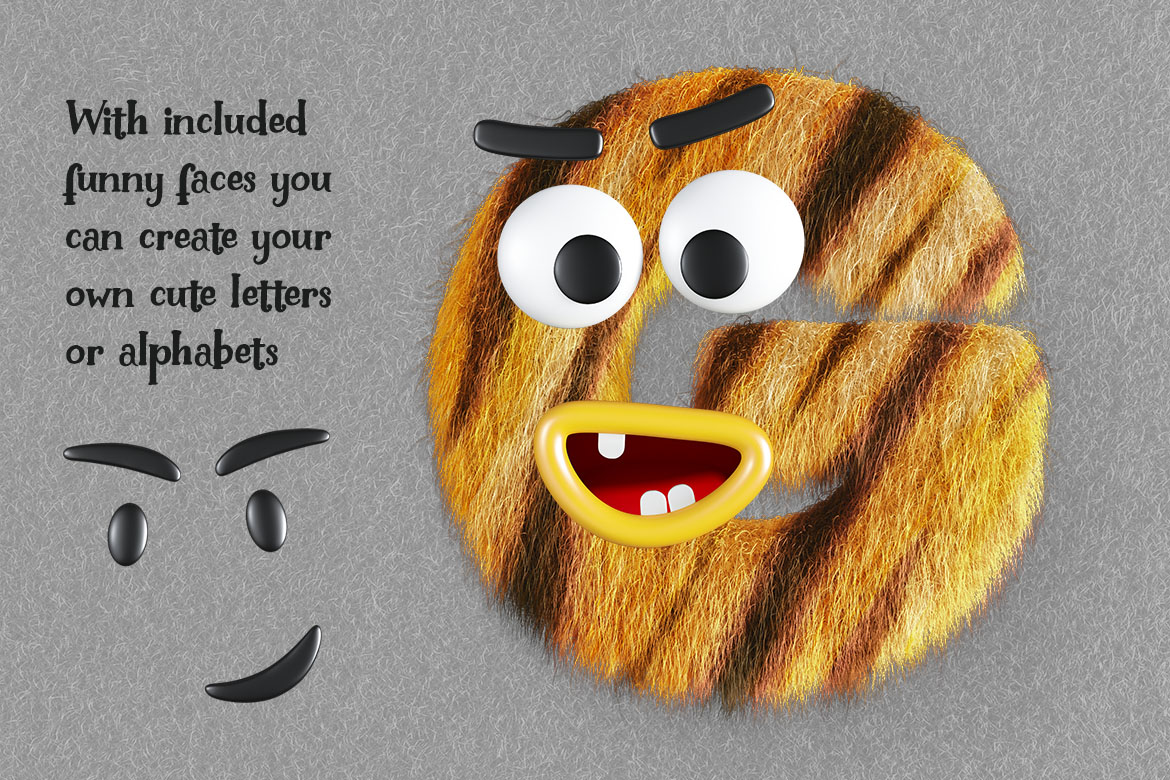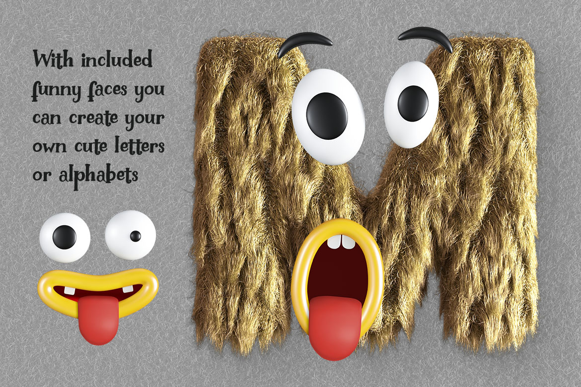 - create your own monster or cute animal alphabet – you can place any from included faces on any lettering set