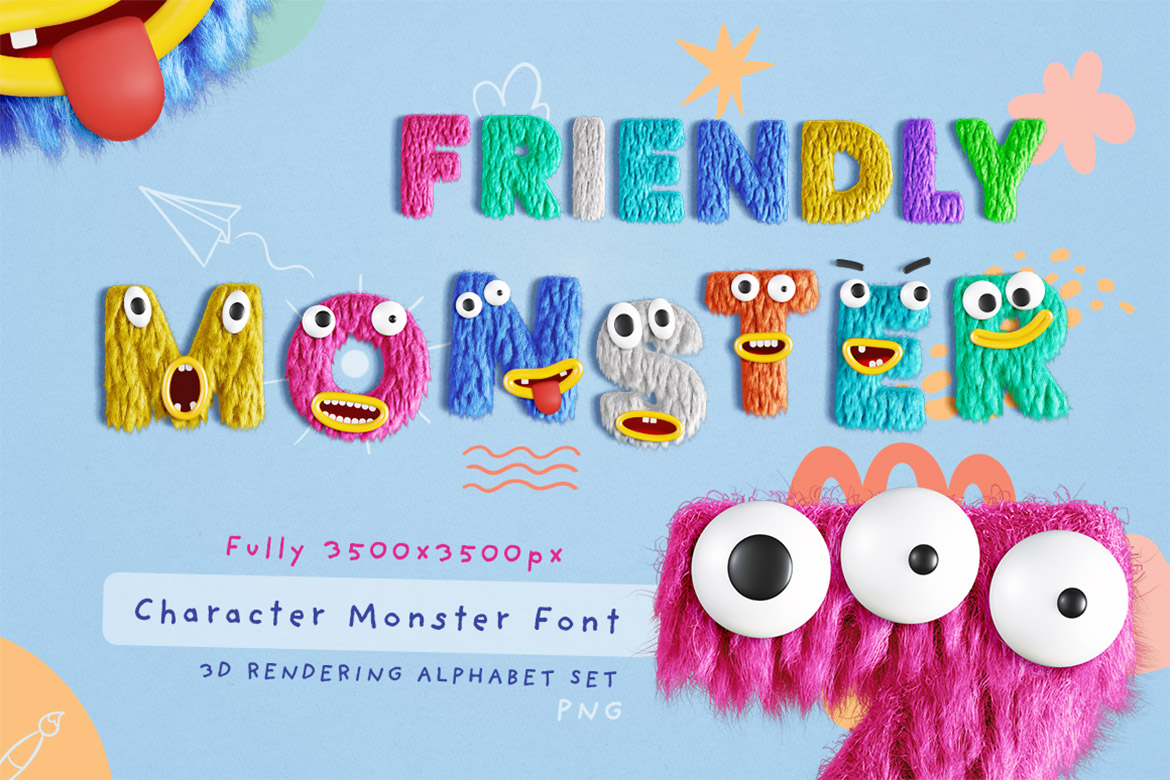 01. Friendly Monster SVG & PNG Fonts from TVartworks