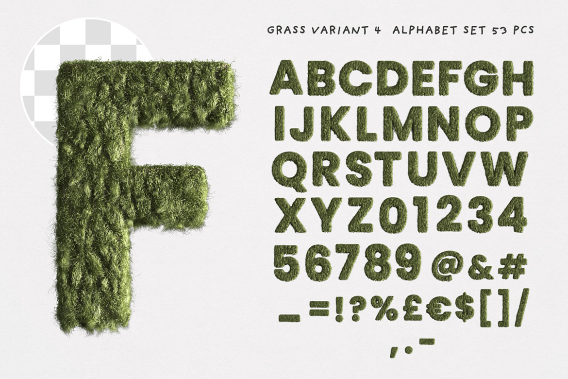 Super creative, cute, playful & funny graphic PNG alphabets & 8 color SVG fonts (green grass or fur). If you need to create original & happy artwork for your kids or realistic grass header in minutes you need to check this bundle! All these PNG graphics are hi-res so really great for any print or web projects. Color SVG fonts are better for smaller resolution projects. Great for original print design, banner, social media post or any graphic promotion 😉 Please check all preview images.