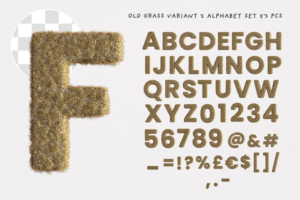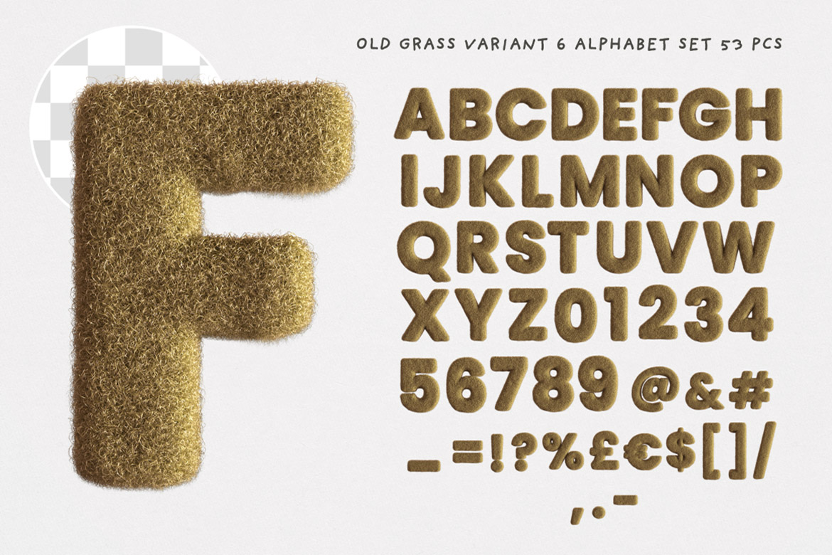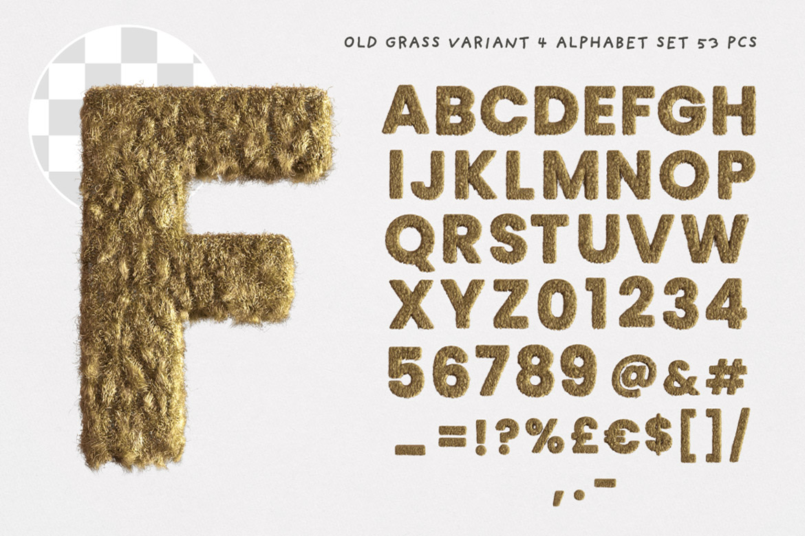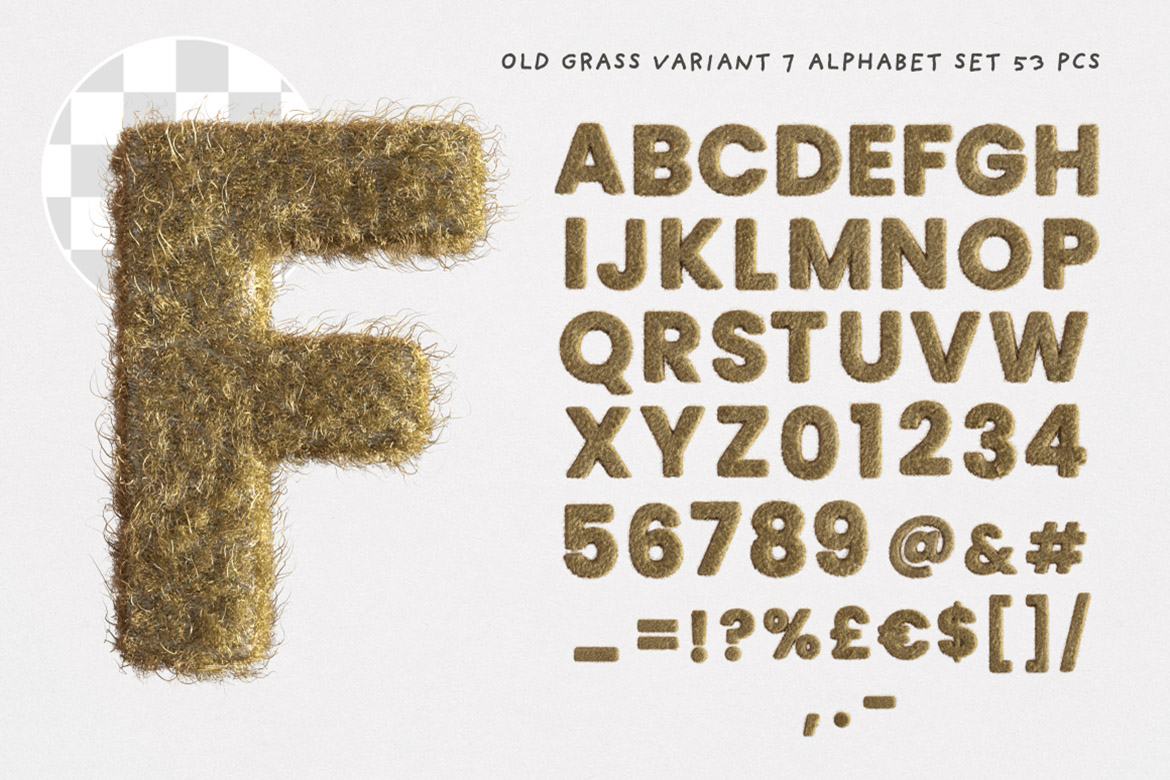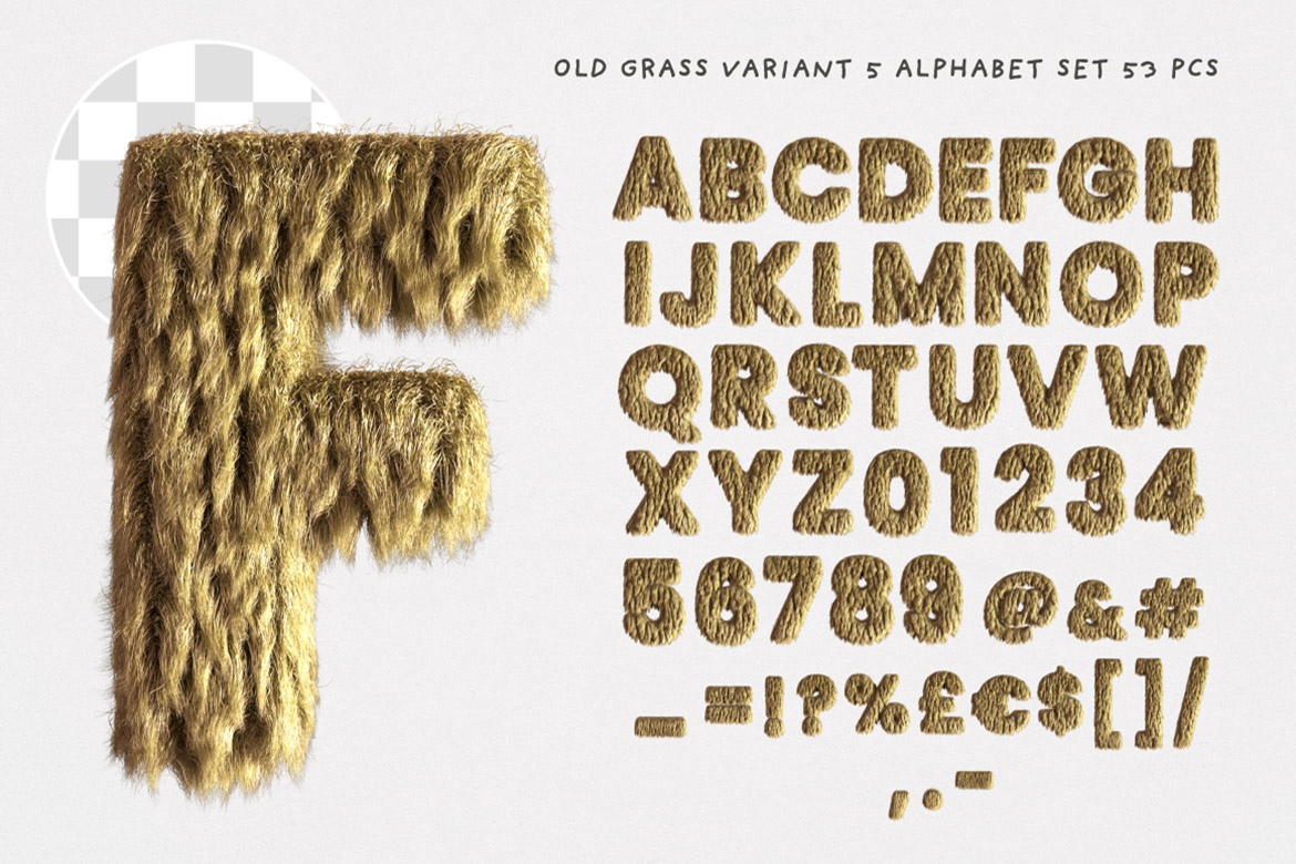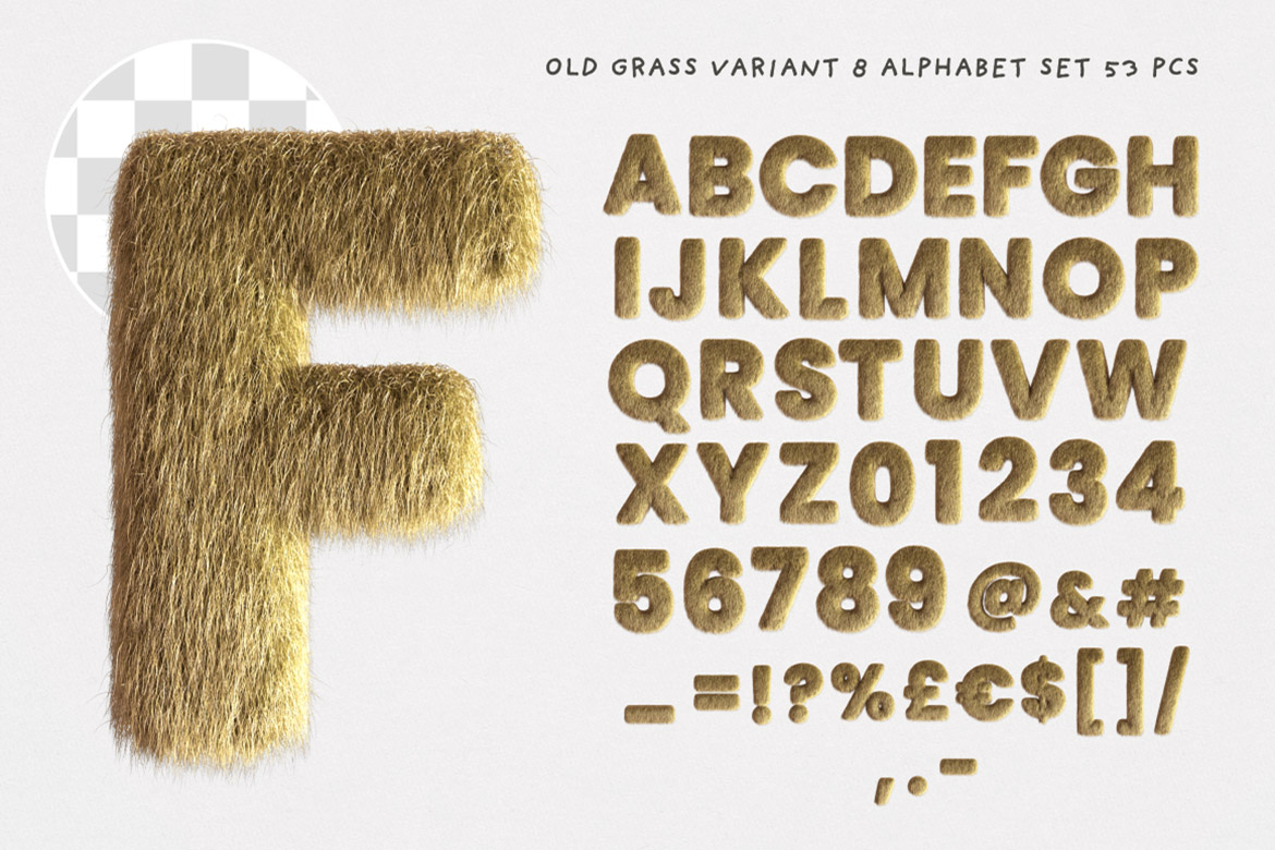 - 8 old dry grass or fur – hi-res transparent PNG alphabets (3500 x 3500 pix)