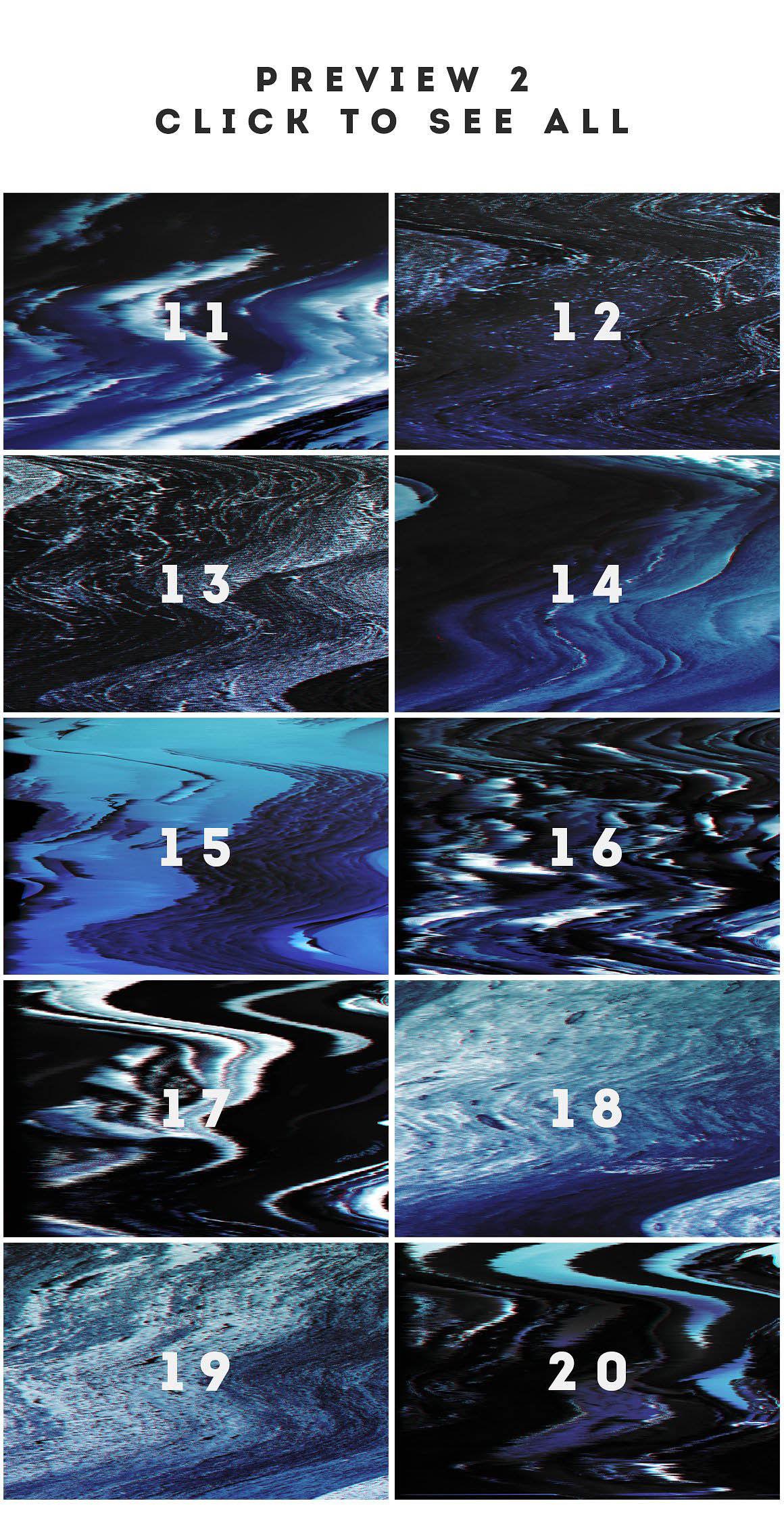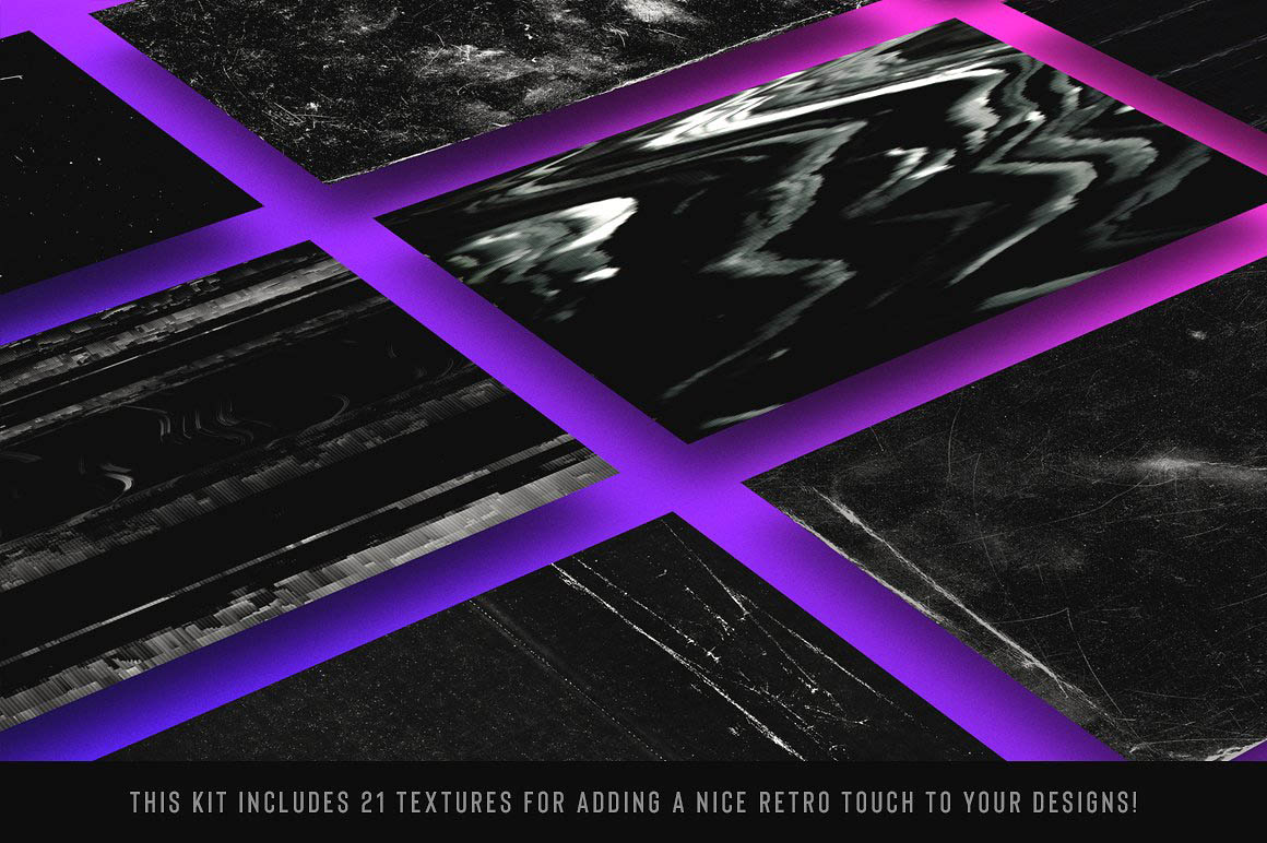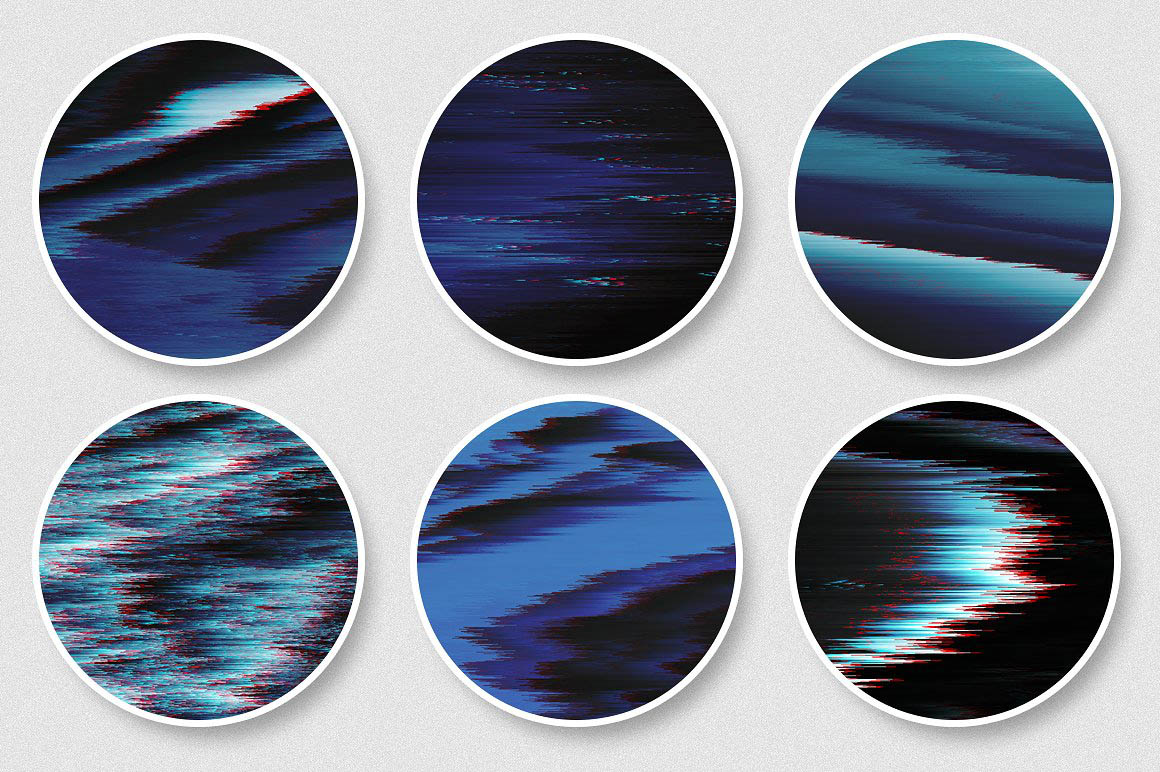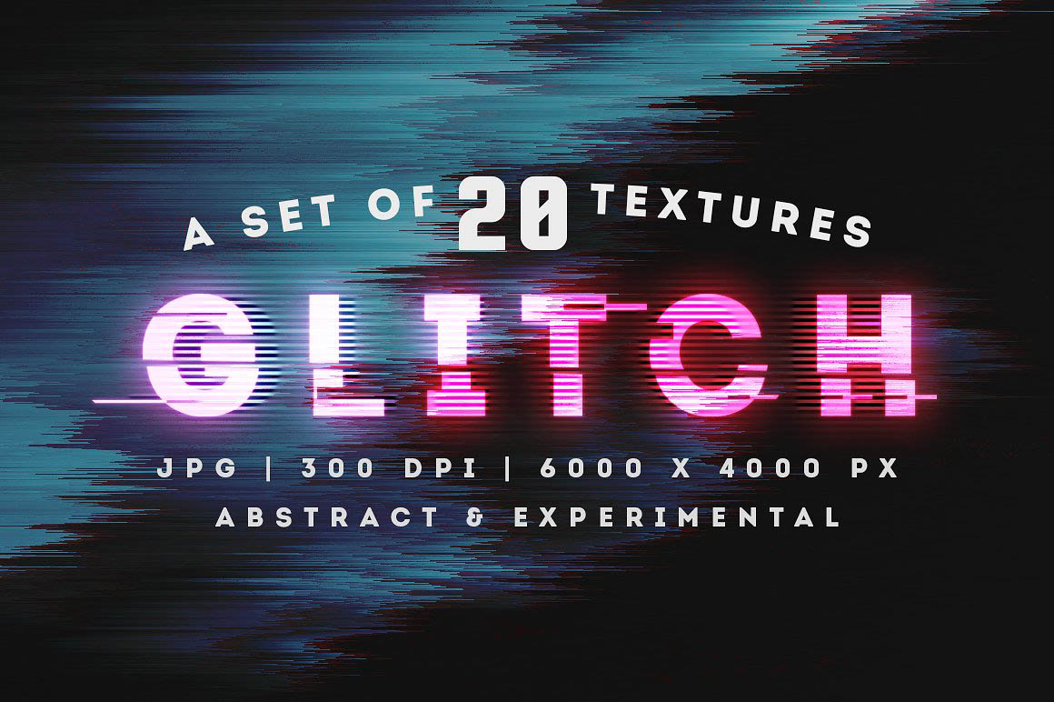 • The set of 20 glitch textures/backgrounds in JPG format (6000×4000 px, 300 DPI)