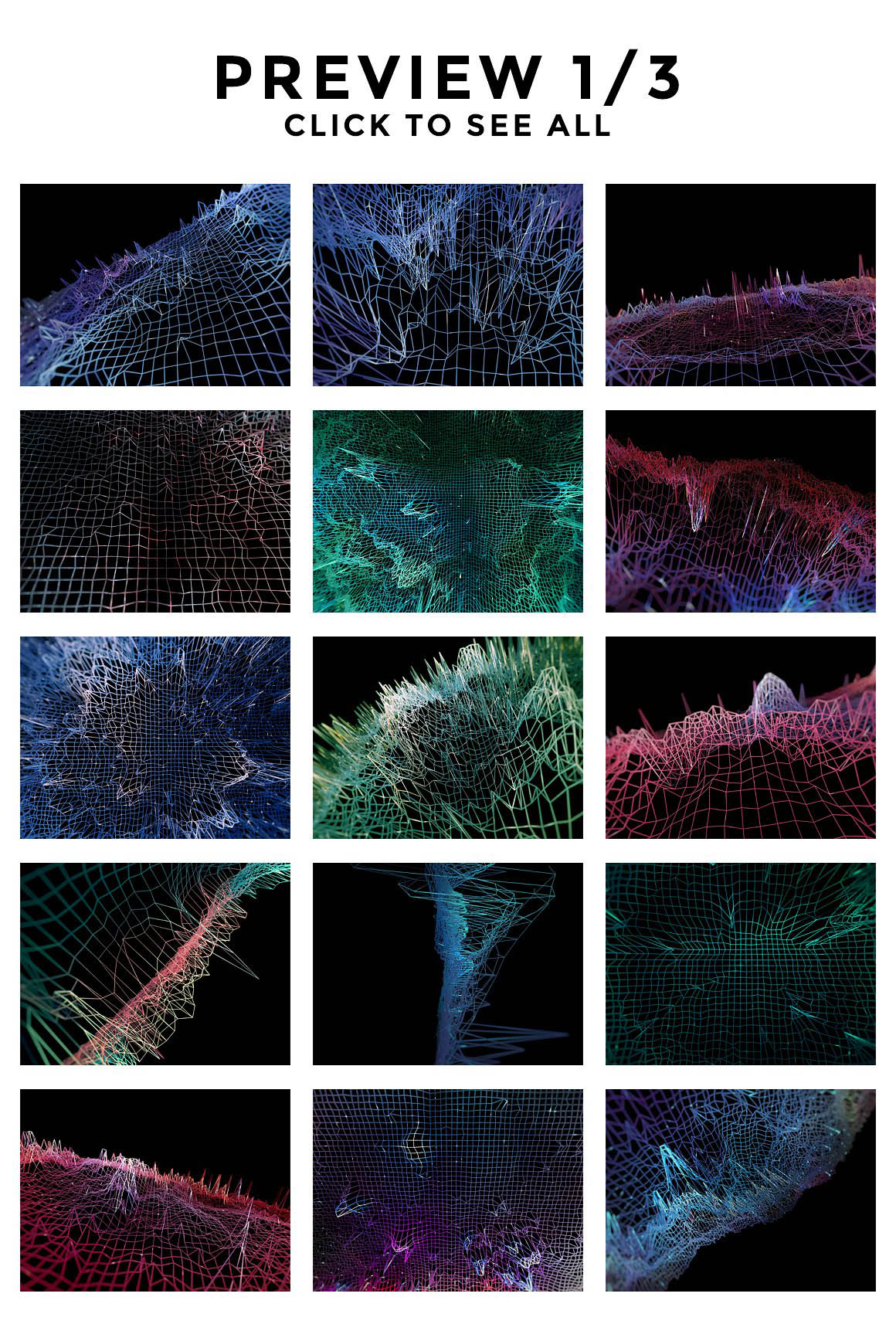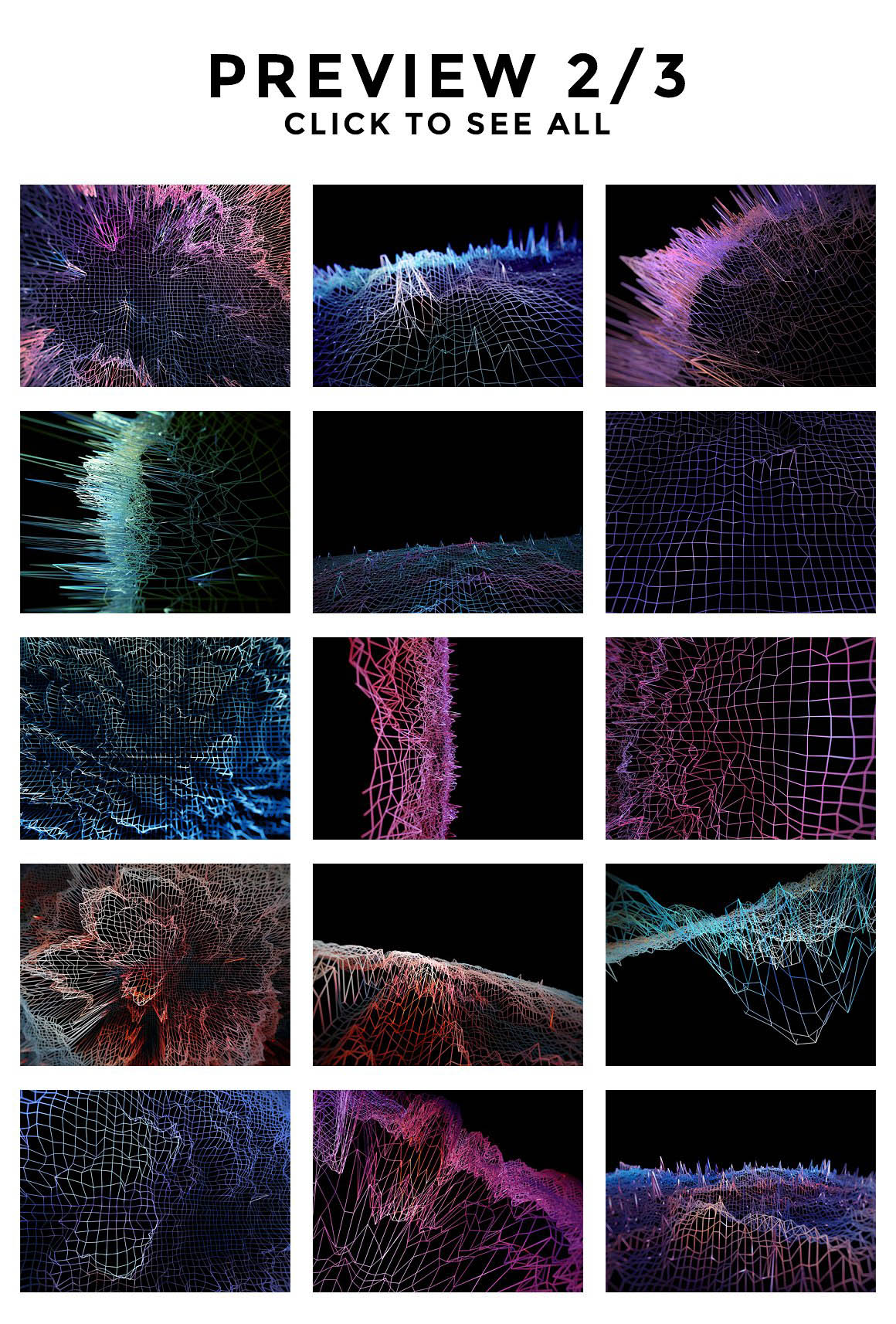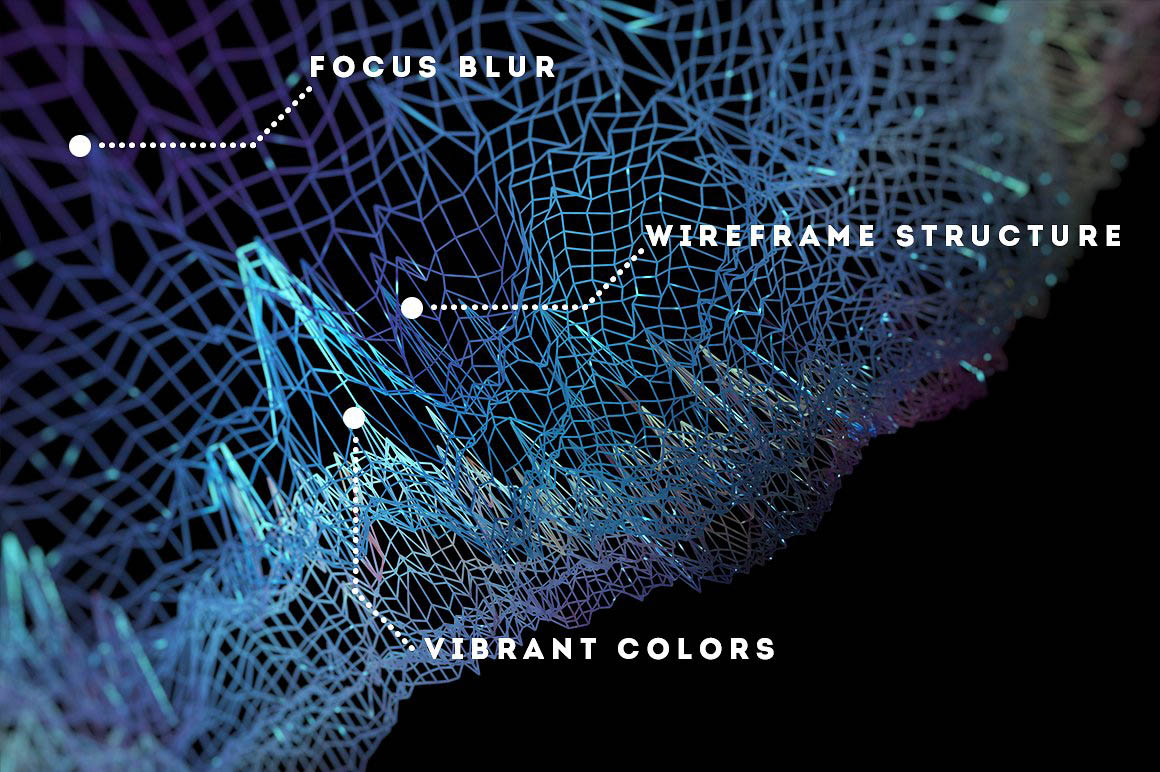 ► A set of 45 abstract wireframe textures, in various colors and structures.
