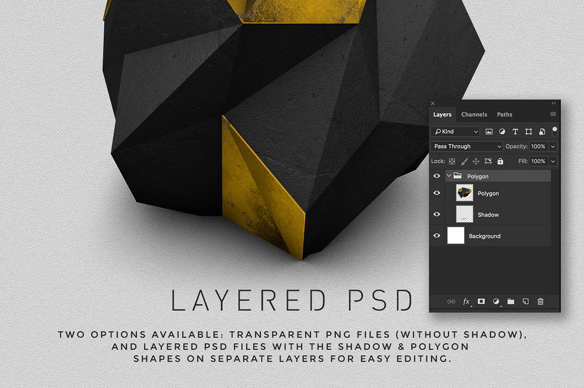 - 44 psd files, with the shadow and the polygon on separate layers