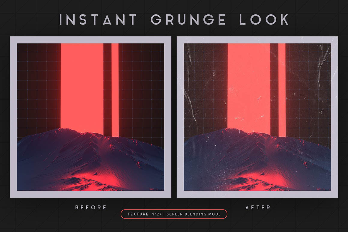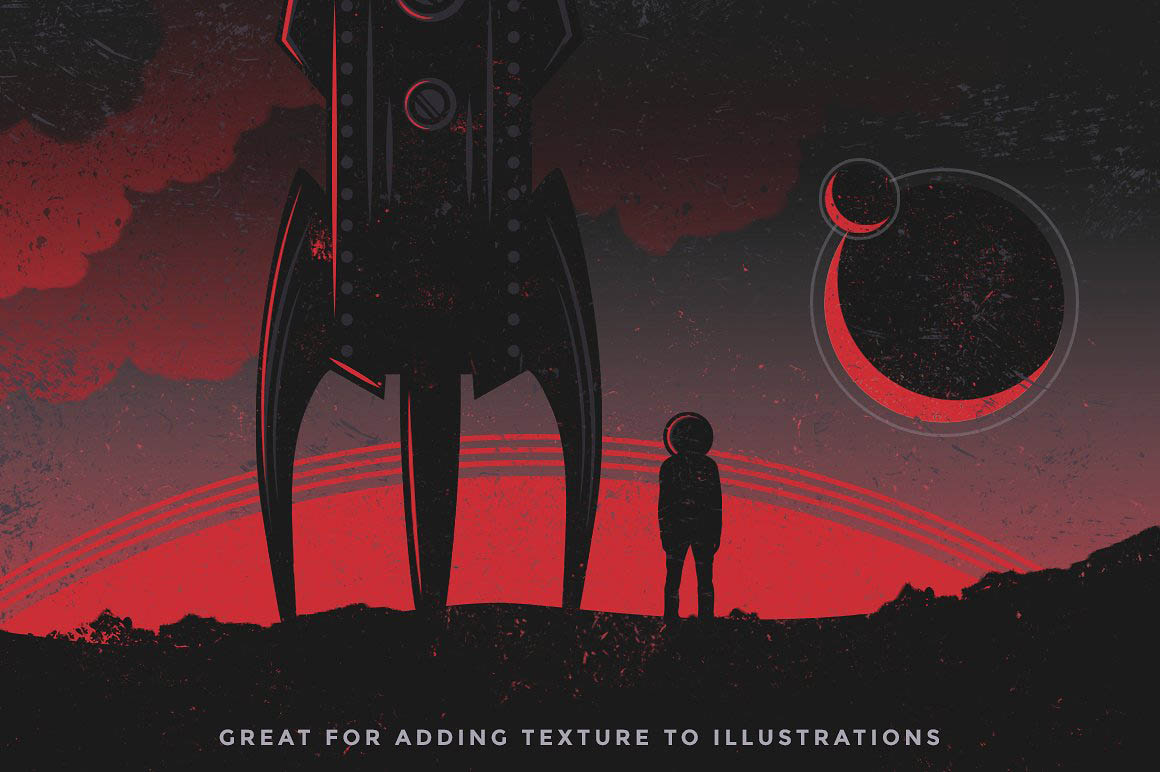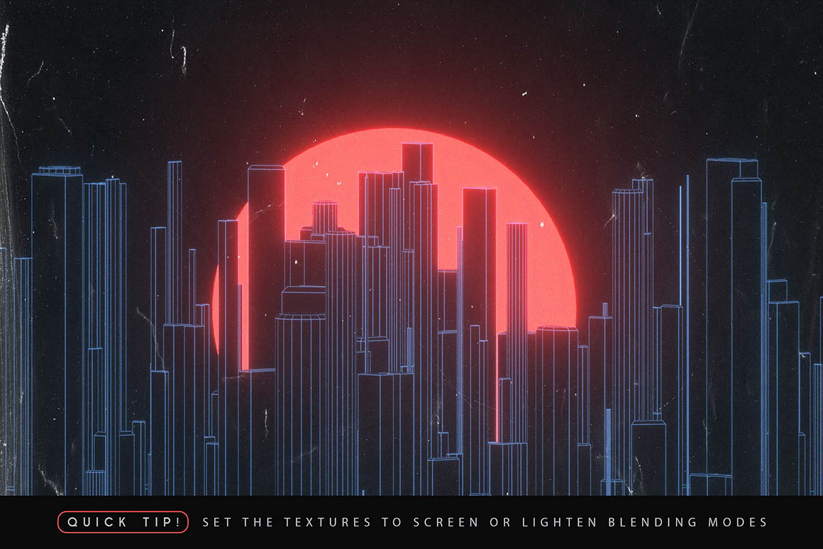 - Textures: a selection of textures that will add the final touch to your designs, from scan lines to grunge paper – play around with blending modes for various effects.