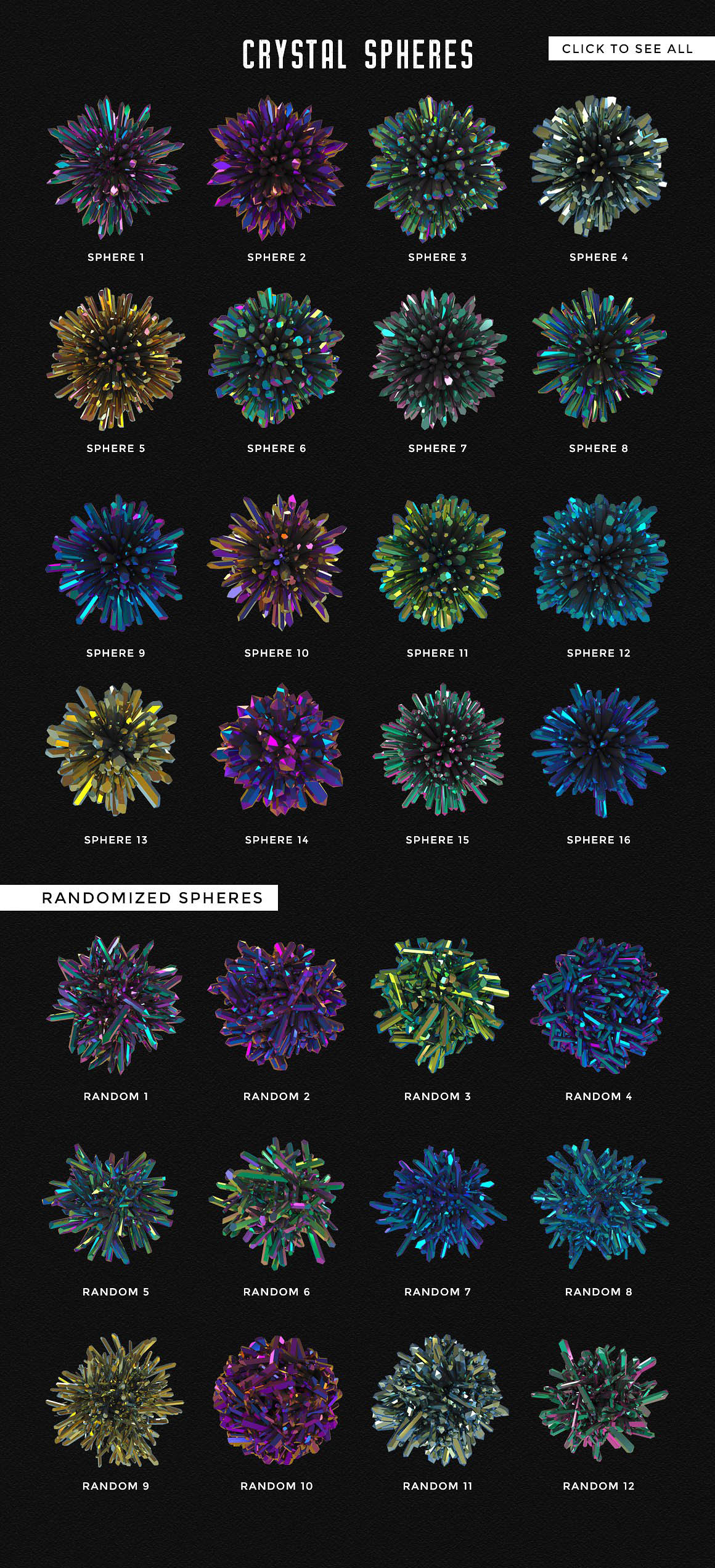 - 12 randomized crystal spheres PNG files