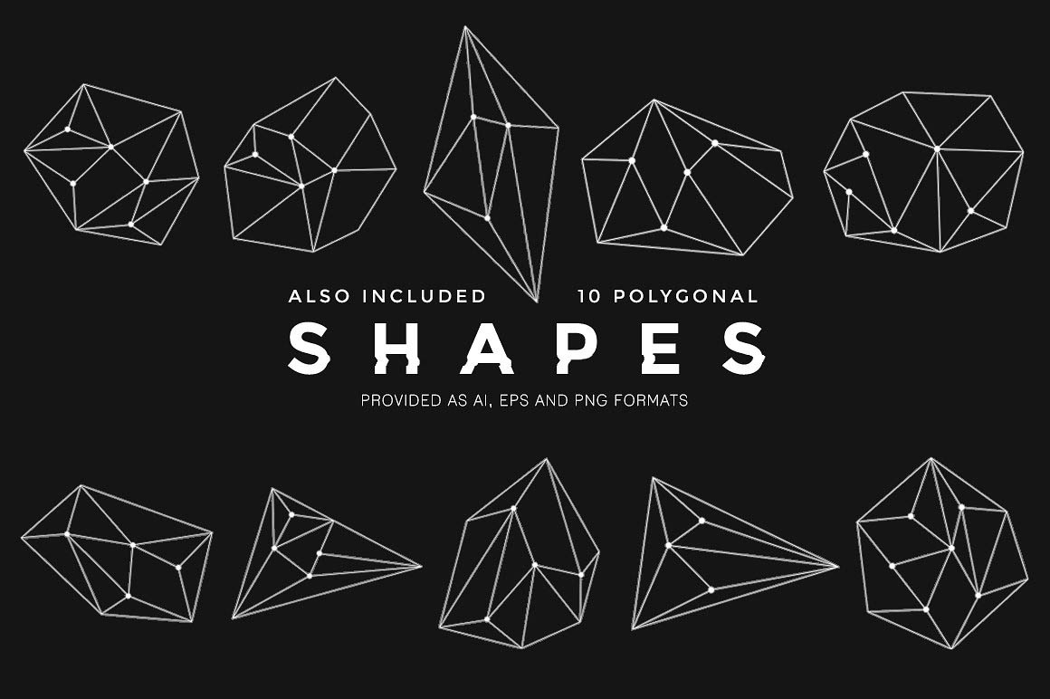 • The 10 polygonal shapes (AI, EPS and PNG formats)