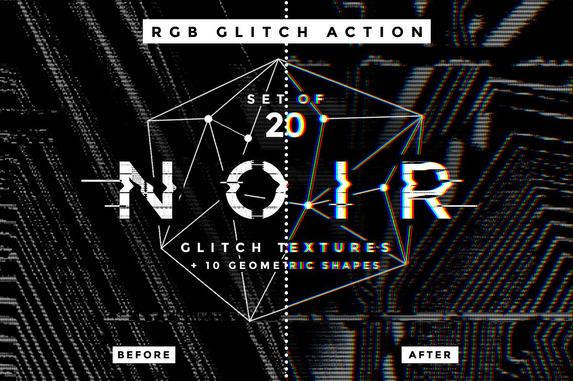 Bonus! Also included in this set, a quick Photoshop action for creating a ‘’RGB glitch’’ effect (color and B&W versions). You can either use this action on the textures themselves for an extra glitch effect, or on pictures. The action is non-destructive and editable, which means the original layer is left as is.