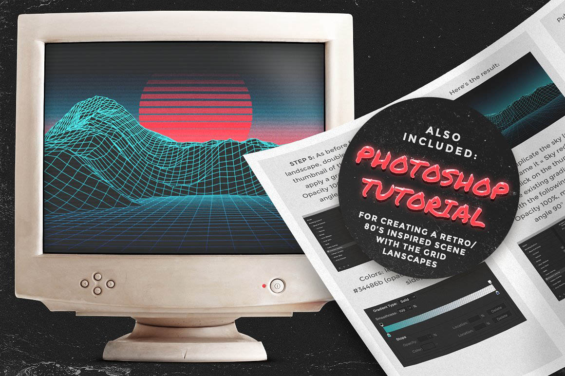 • A PDF Photoshop tutorial explaining how to create a retro inspired scene using the grid landscapes, with pictures.