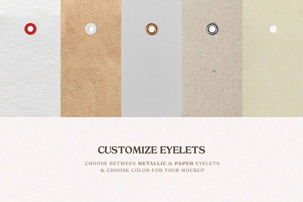 Take your time generating a mockup scene with the impeccable label! You can choose from 10 different tag shapes, customize your label by adding one of 5 string variants and eyelets, fitting the original design and after picking one of 8 backgrounds, place your amazing tag right there. Voila, the flawless scene is ready to amaze everyone! We’ve provided each tag with detailization and realistic 3 shadow options to make them as authentic as possible. Pattern or texture showcasing, logo presentation, commercial or advertising — we put no restrictions on these tag mockups use. Generate your own bit of elegance!