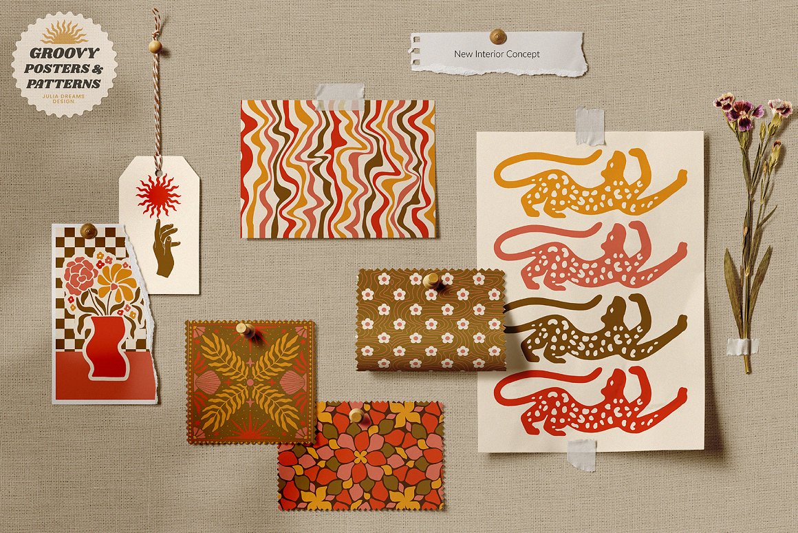 - Retro & groovy illustrations, patterns, cards borders and more!