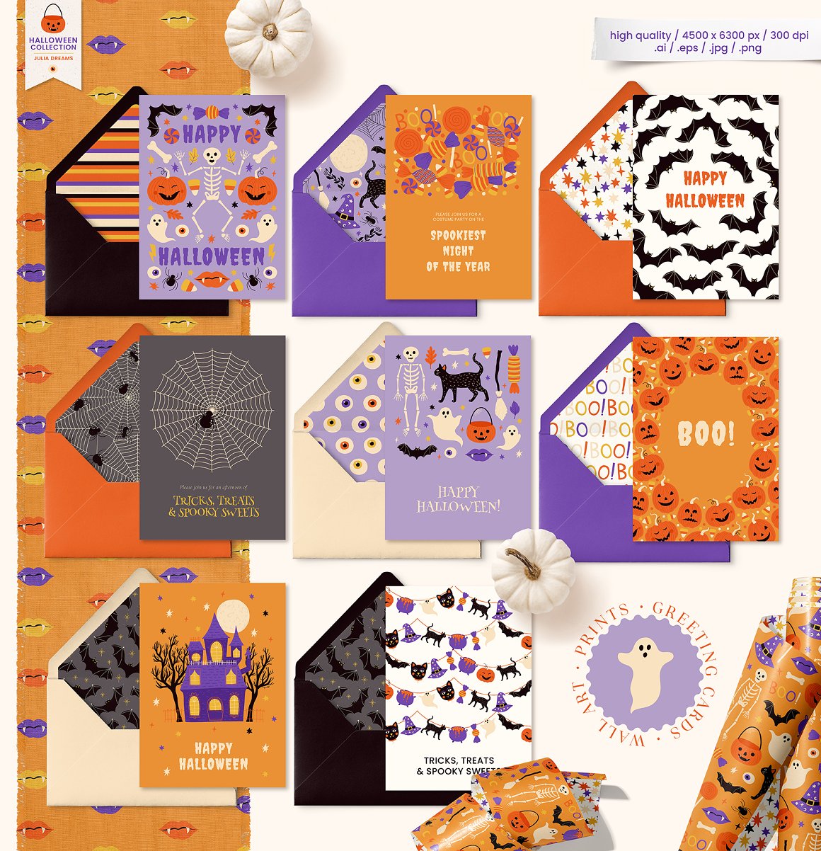 Halloween Toolbox great for wedding invites, wall art prints, greeting cards, gifts, logo, posters, cards, branding, planners, covers, social media accounts, wrapping paper, wallpaper, fabric, scrapbooking, stickers, sites, blogs, invitations and for many more.