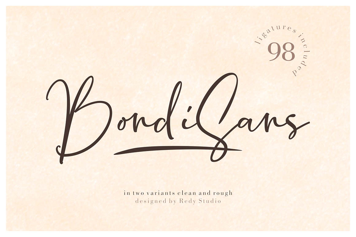 Introduce BondiSans, is a bold messy, casual, carefree script with lovely and Comes with 98 ligatures for a totally unique hand-written feel. Bondisans consists of 2 variants, which are clean and rough, you can see more in the preview.