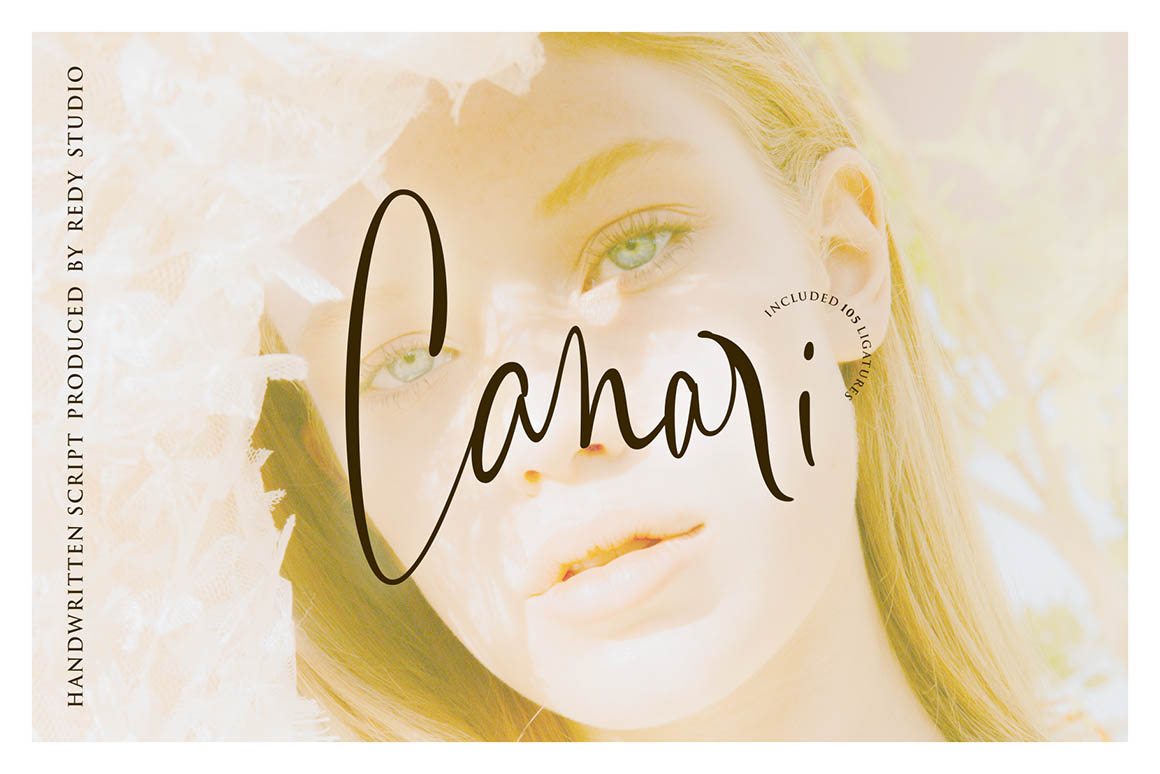 Introducing Canari is a handwritten signature typeface coming with more than 105 stylistic ligatures. Its classy look makes it the perfect fit for signature logos, printed quotes, wedding invitation cards, social media headers, product packaging, etc and also comes with numbers, punctuation, ligatures and it also supports other languages 🙂