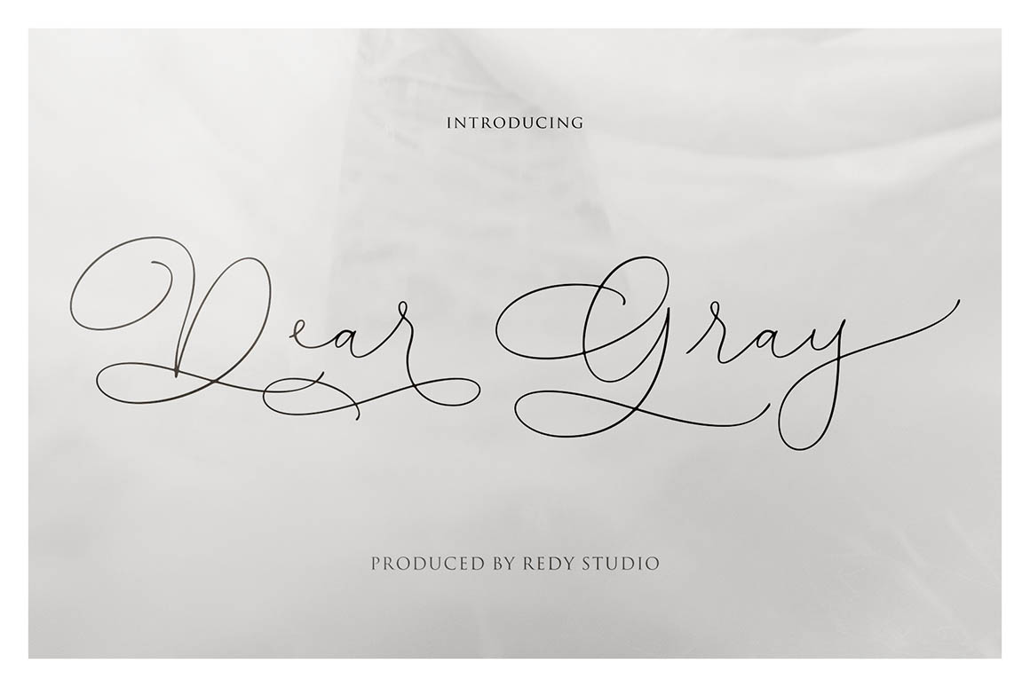 Introducing Dear Gray is a modern calligraphy font. Dear gray is beatiful for quote, logotype, website header, fashion design,wedding card design and any more. Dear Gray includes full set of gorgeous uppercase and lowercase letters, numerals, punctuation and ligatures and also, includes beautiful beginning and ending swashes, many alternates and it also supports other languages 🙂