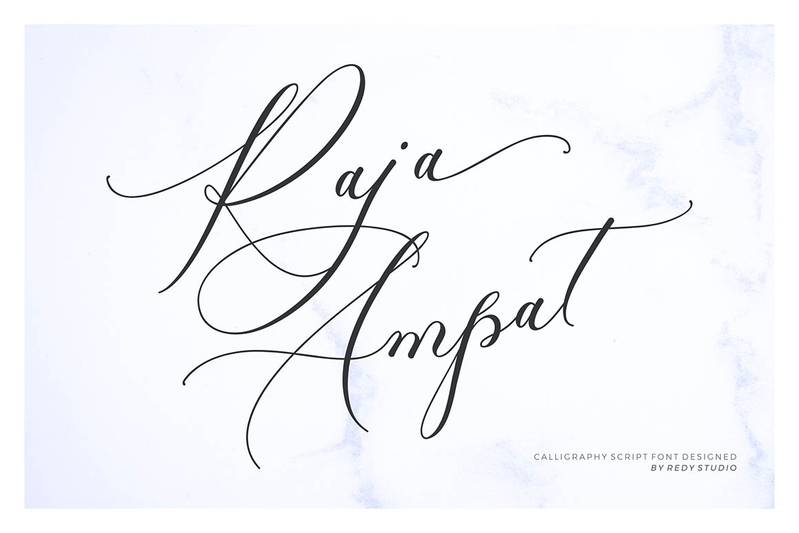 Introducing Raja Ampat is a modern calligraphy font with lovely movements. Raja Ampat provides beautiful letter essence for any design project including wedding invitation, card, Quote, Branding, etc. This font also has lovely ligatures, alternative letters and swashes.